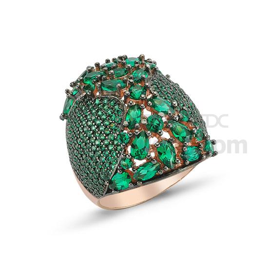 This handmade harem ring is paved with dense emeralds in different sizes and shapes. The eye-catching green and rose golden hues lend a deluxe touch to your finger. This exquisite emerald ring is easy to mix and match.
