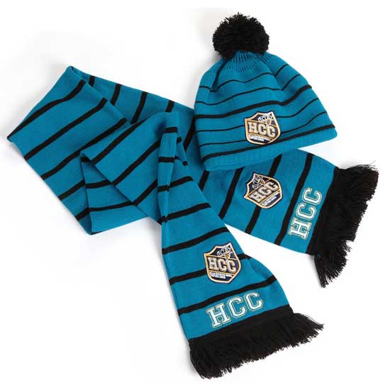 - Jacquard knitted fan scarves and hats.