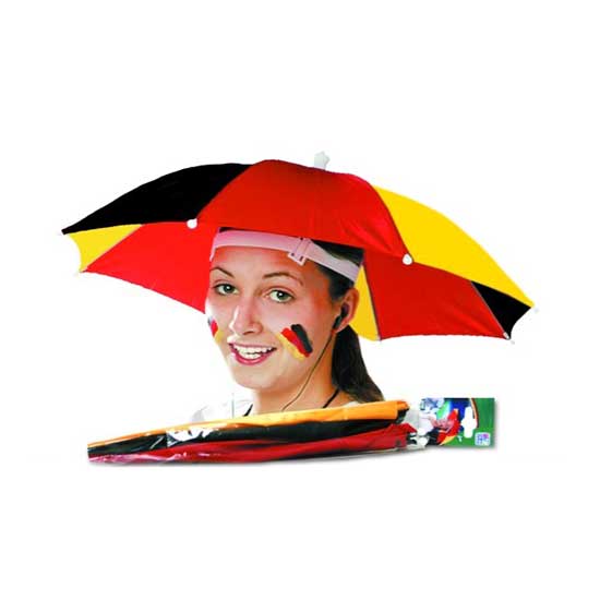 This unique hat umbrella features a small polyester canopy in a German national flag design. The lightweight and stylish hat umbrella is perfect to wear for assorted outdoor sports events. It can protect you from sun and rain.