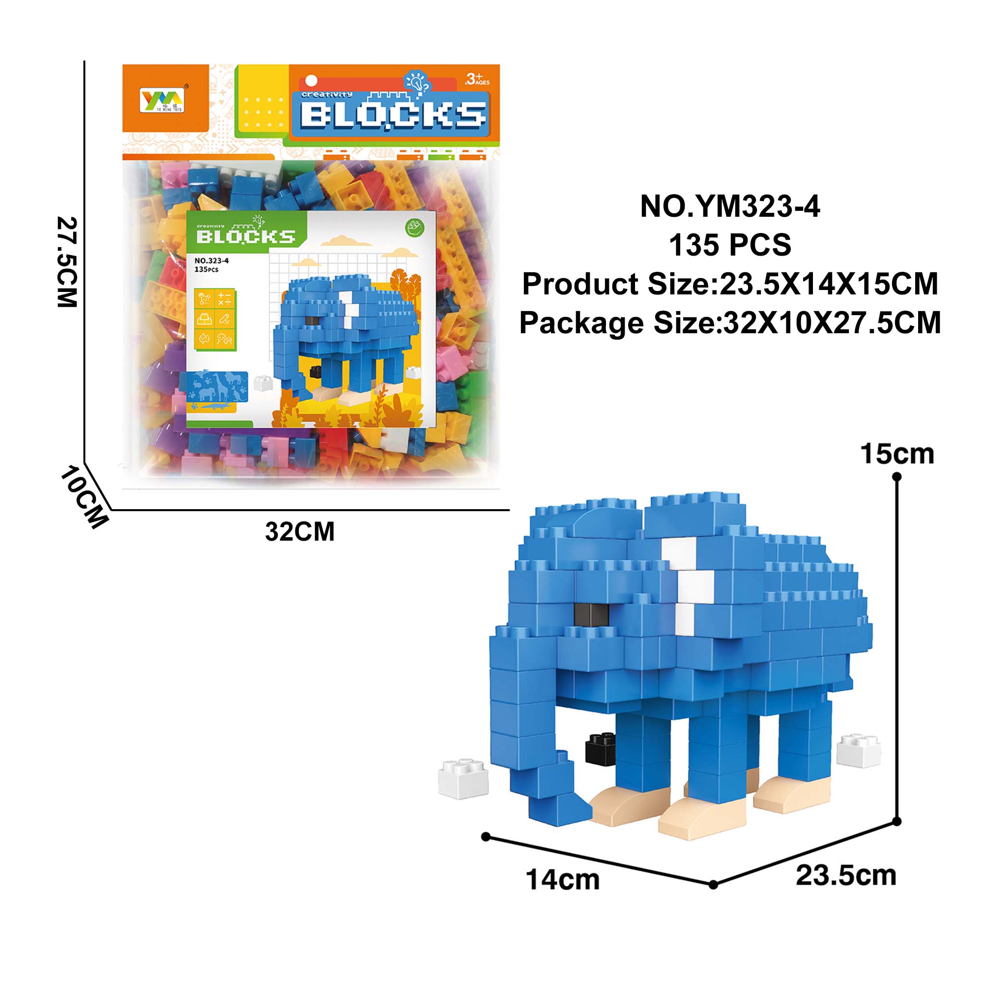 Head card bag packing elephant building block 135PCS