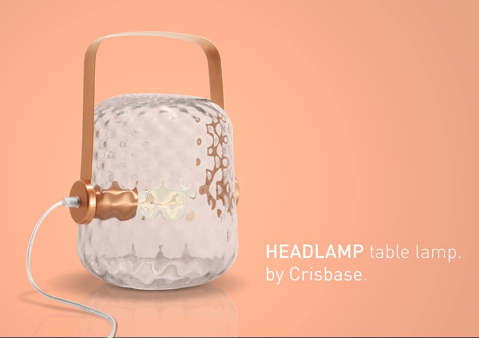 • Table lamp in clear glass with diamond optic effect and brushed brass metals.