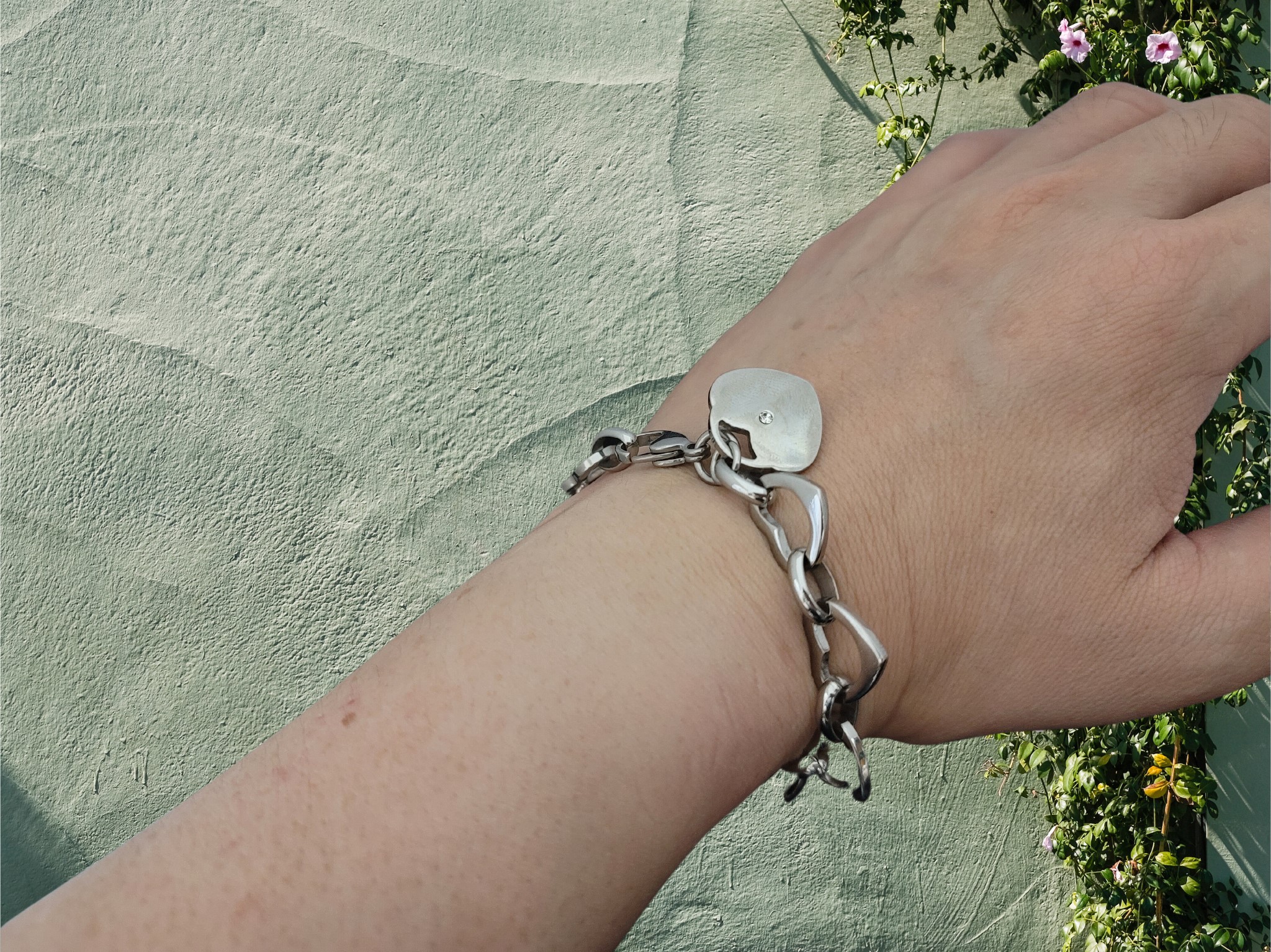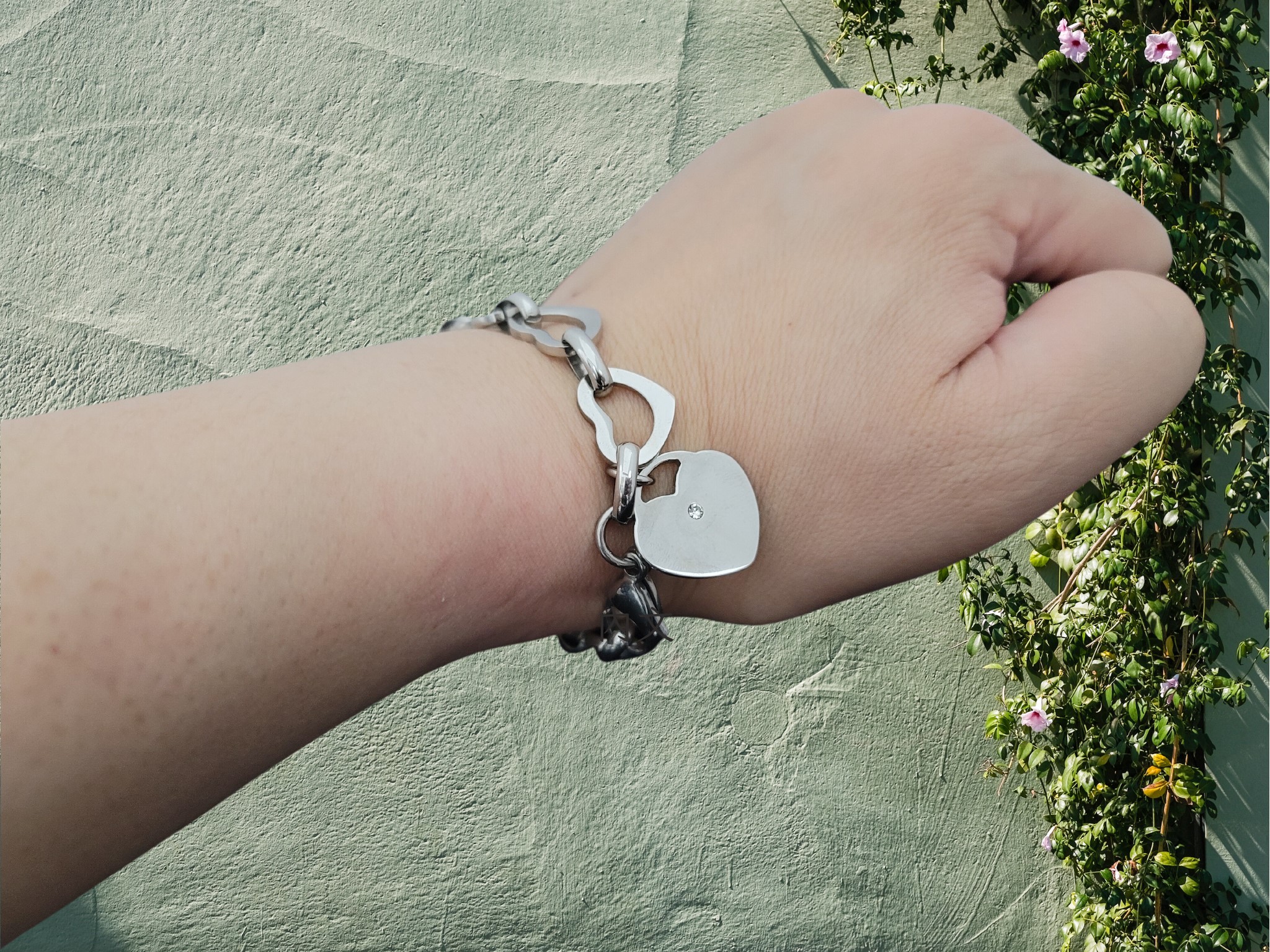 #bracelet #bracelets #chunky bracelet #lady #girl #heart #CZ stones #heart charm #birthday gift #cheap #men #jewellery #stainless steel jewellery #fashion #costume