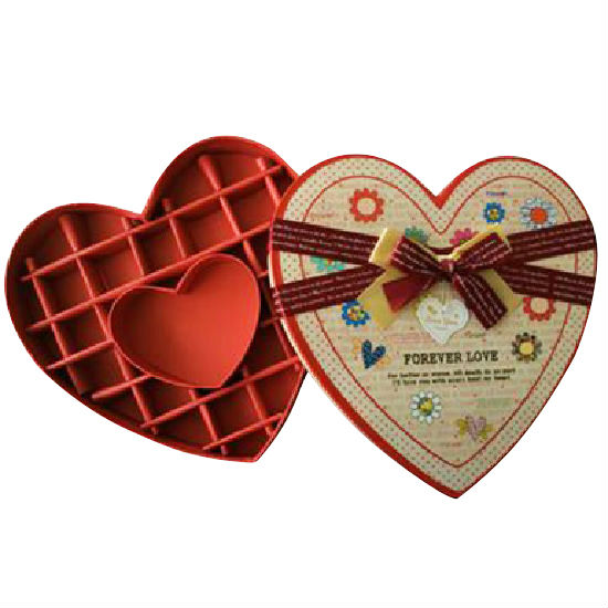 This paper gift box boasts a two-piece construction intricately crafted in an endearing heart shape. The cover lid is accented with vibrant patterns and ribbon bows, while the bottom tray is partitioned with multiple compartments to keep dainty presents.