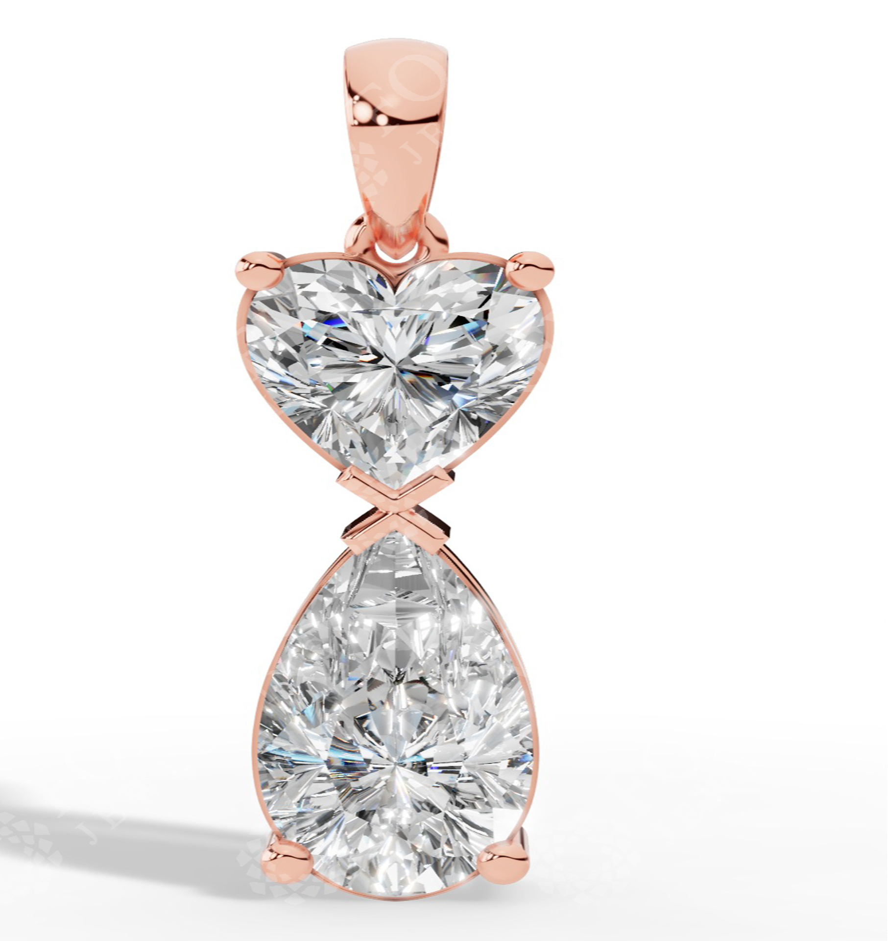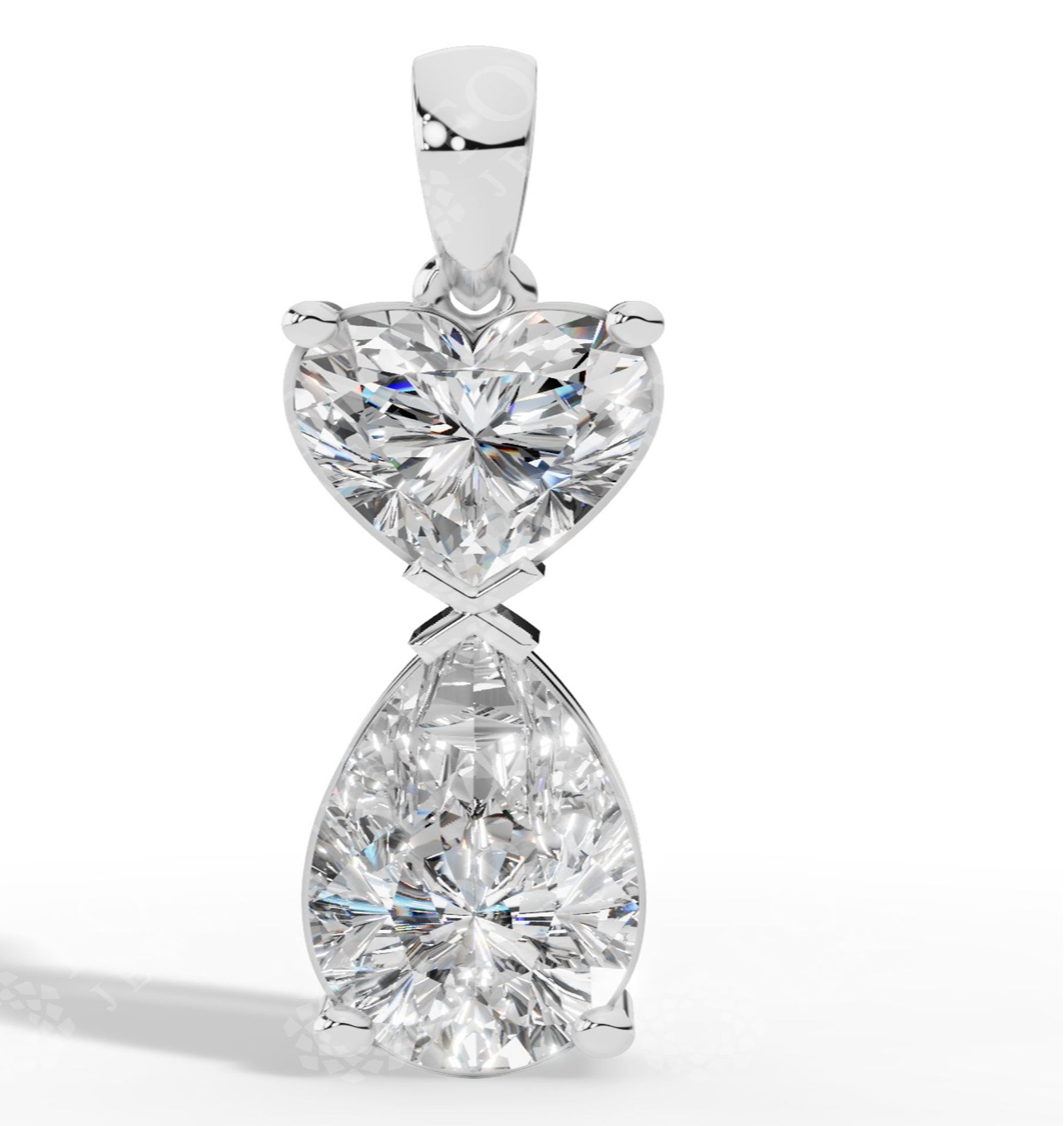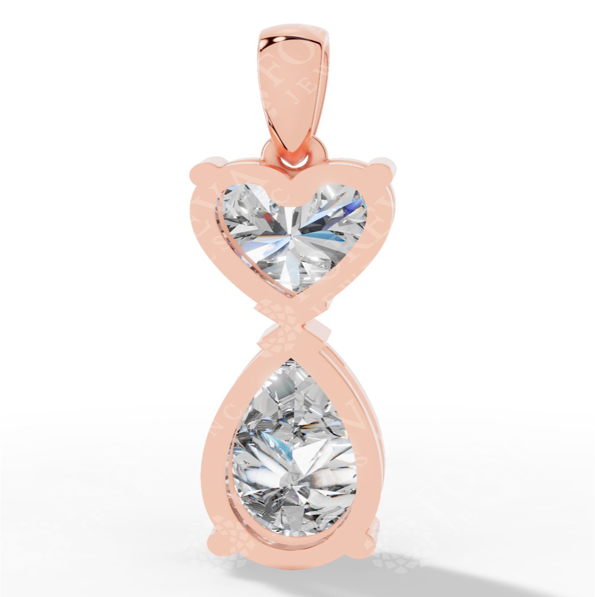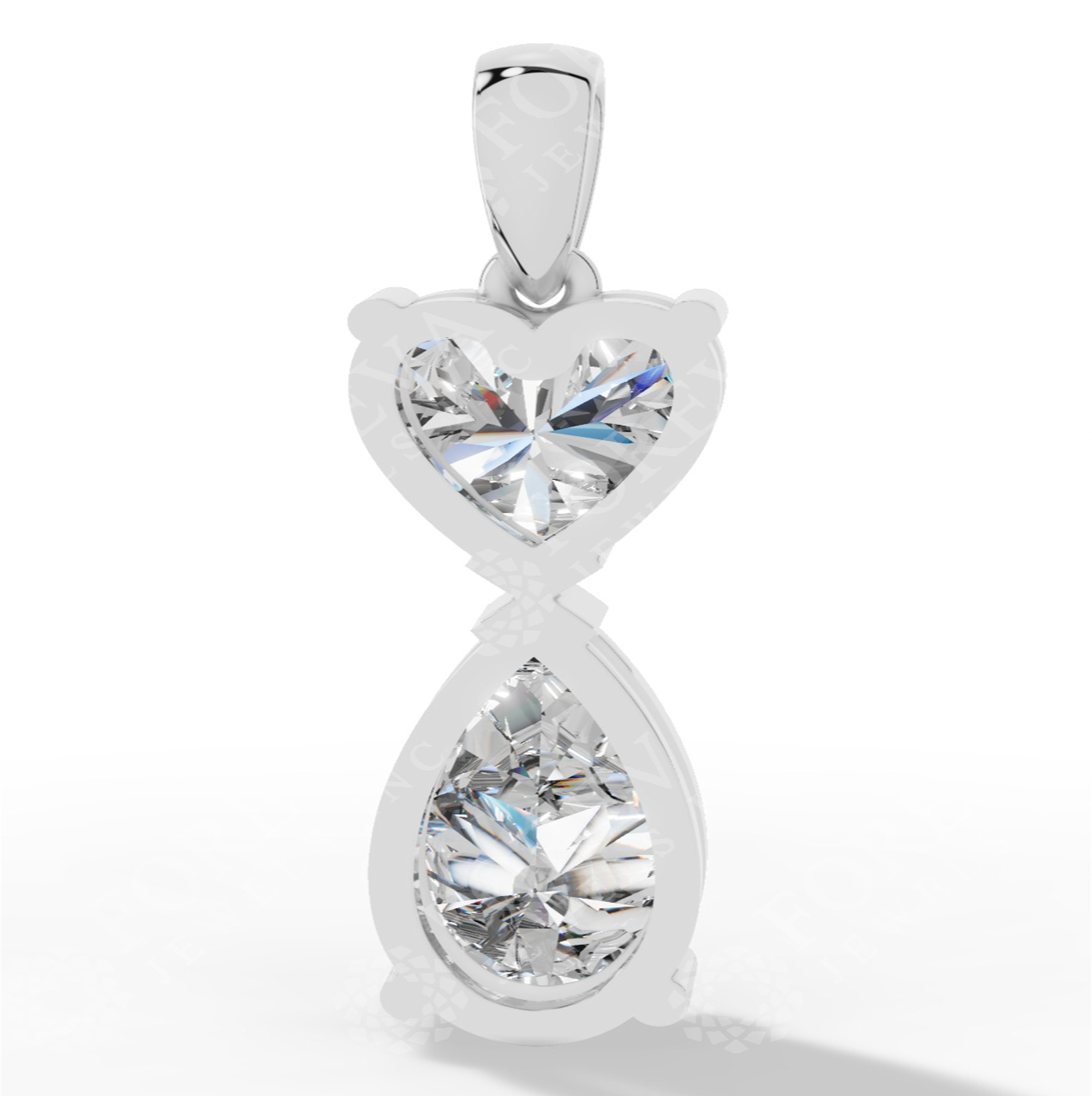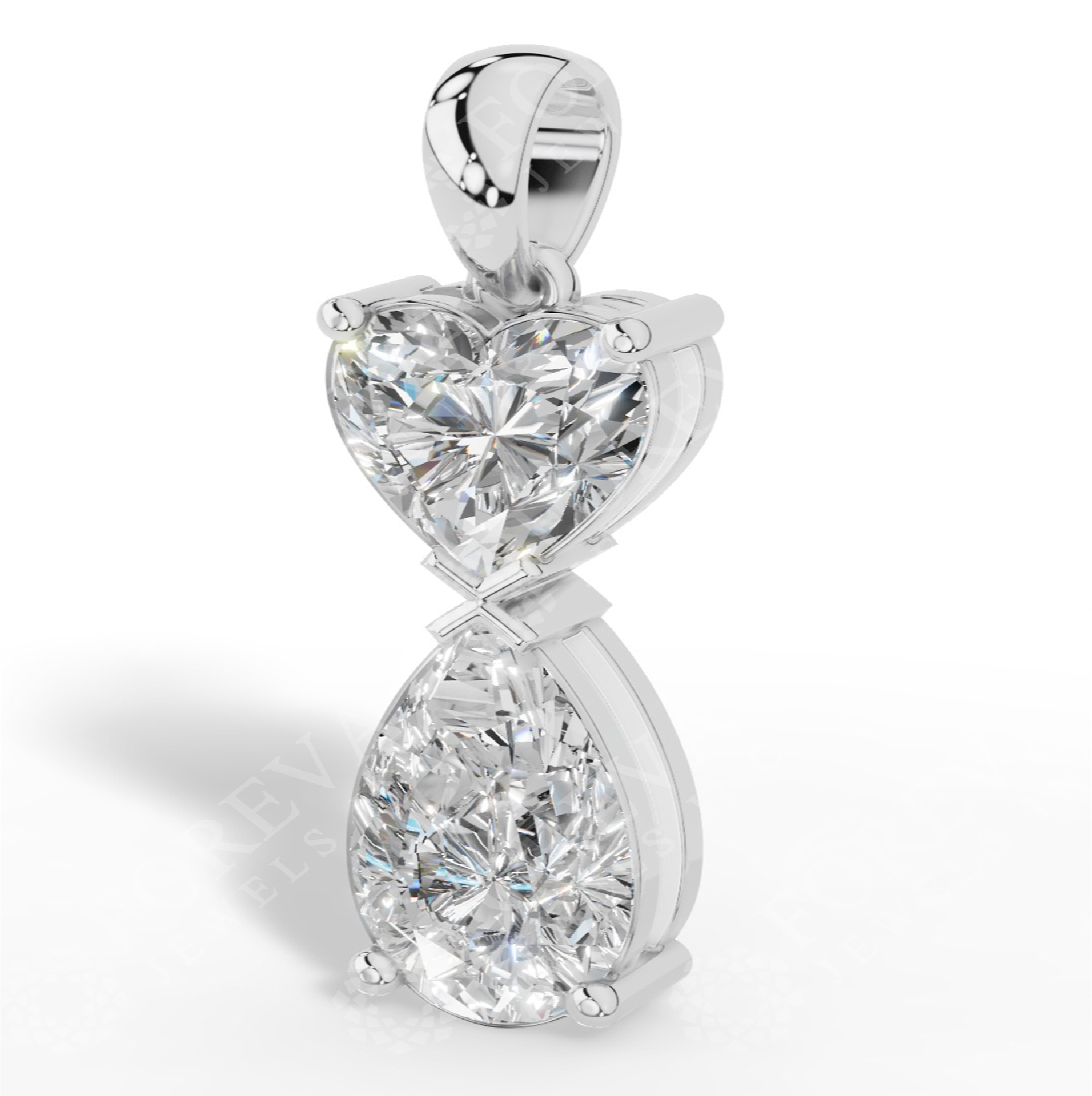 Double Charm Heart & Pear Cut Pendant Necklace In Lab Grown Diamond With Chain