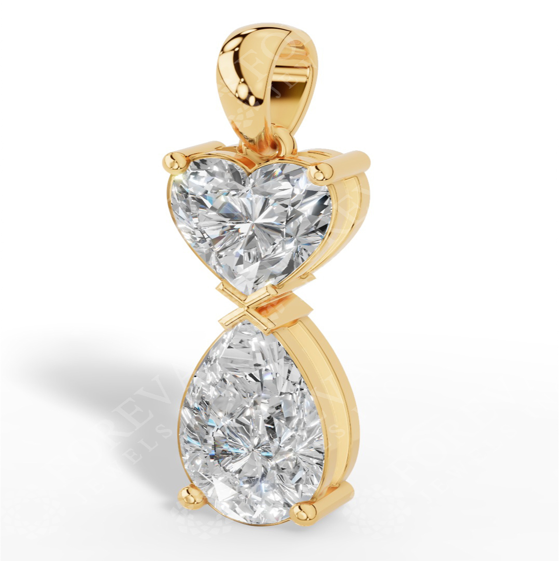 The heart and pear cut solitaire pendant necklace features a romantic design combining heart and pear-shaped lab-grown diamonds, set in an elegant chain for timeless beauty and ethical luxury.