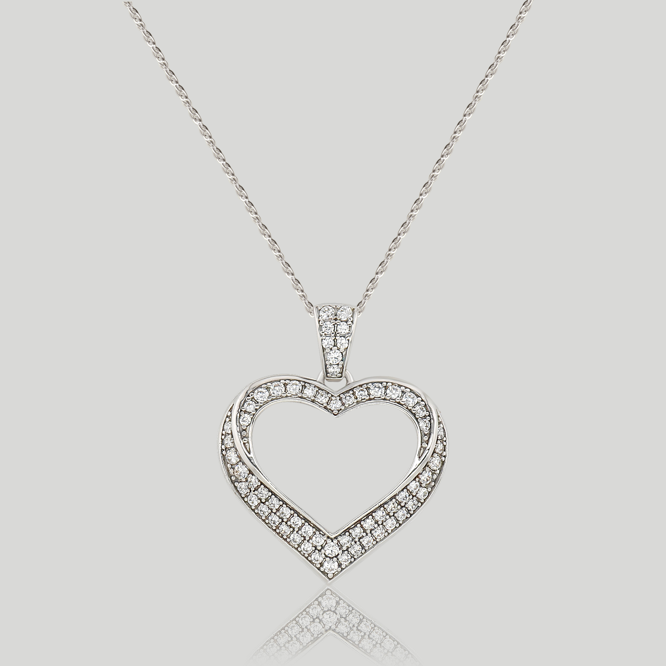 This is a sparkling heart-shaped pendant crafted in strelling silver with 14K flash gold plated. It features an open-center design, framed by a double border encrusted with shimmering pavé-set clear stones, creating a glamorous and romantic look. It's a timeless accessory perfect for adding a touch of elegance and sentiment to any outfit.