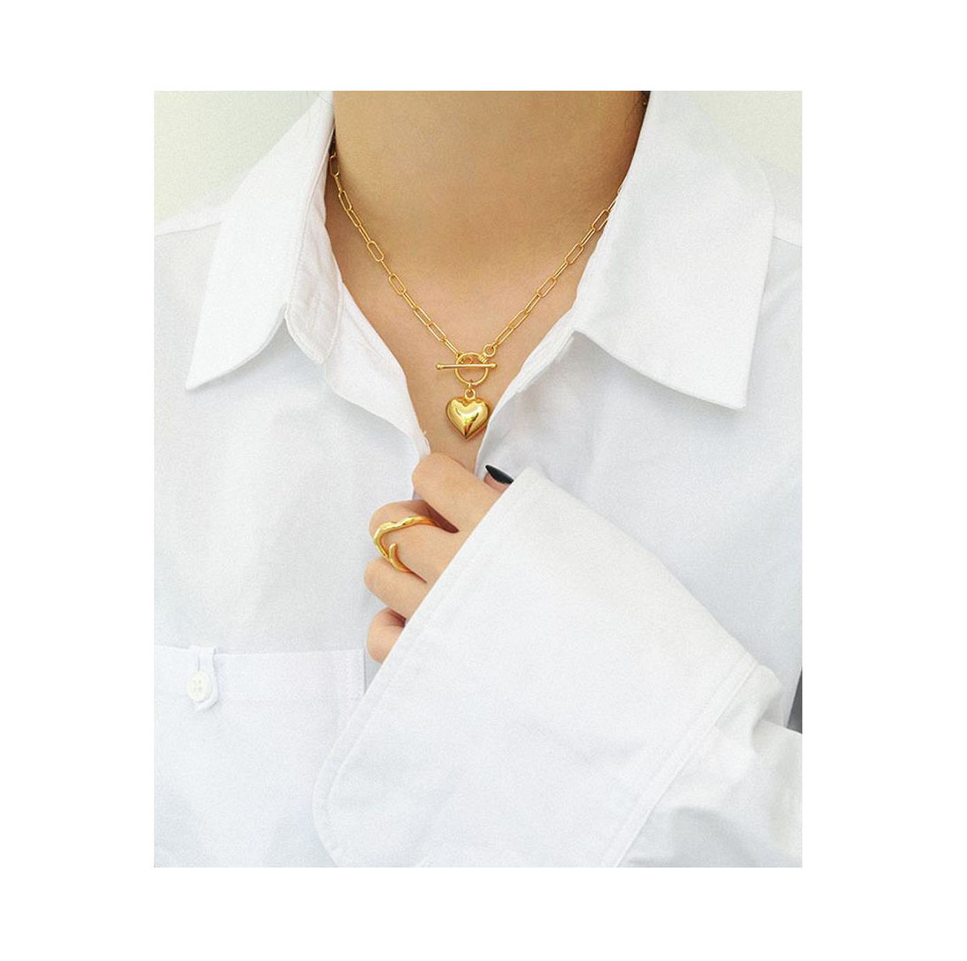 As shown is a high-fashion heart style pendant alloy parts jewelry steel necklace.