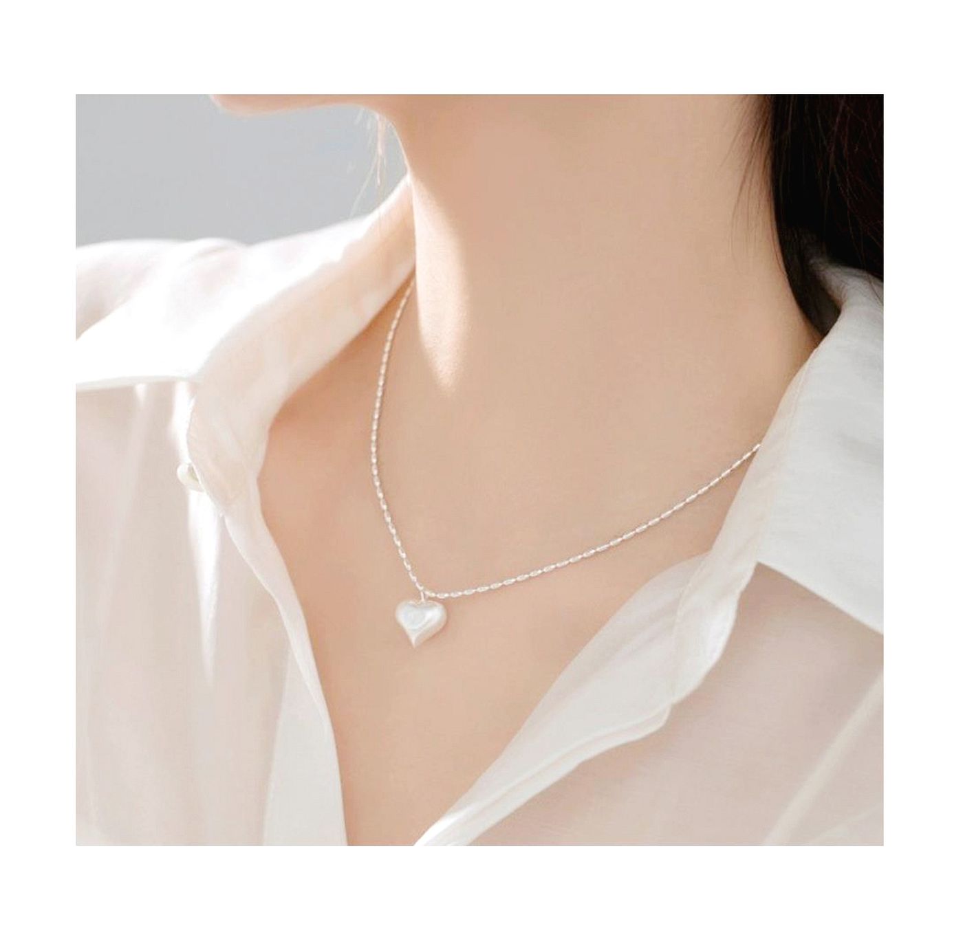 As shown is a high-fashion silver heart pendant alloy parts jewelry steel necklace.