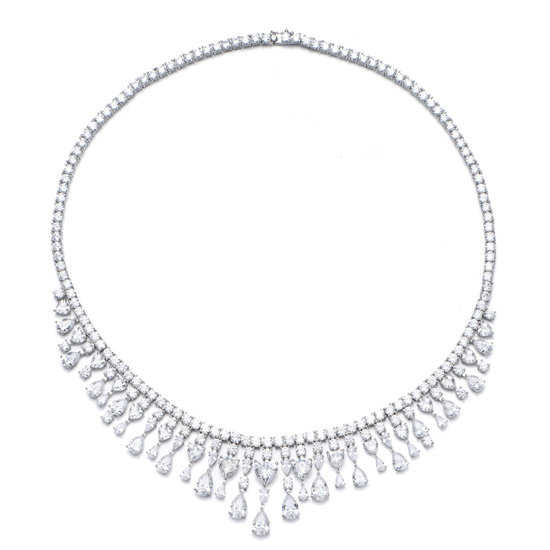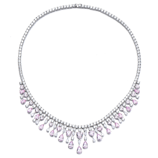 Heart Shape And Pear Shape Diamond Pink Cubic Zircon Rhodium Silver Necklace