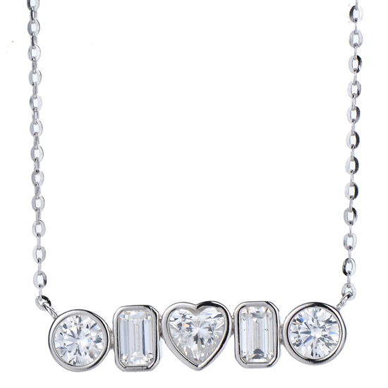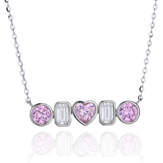 Heart Shape And Round Diamond Pink Cubic Zircon Rhodium Silver Necklace