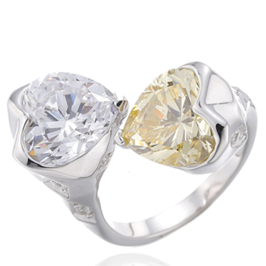 Heart Shape Morganite Nano And Round White Cubic Zircon Rhodium Silver Ring