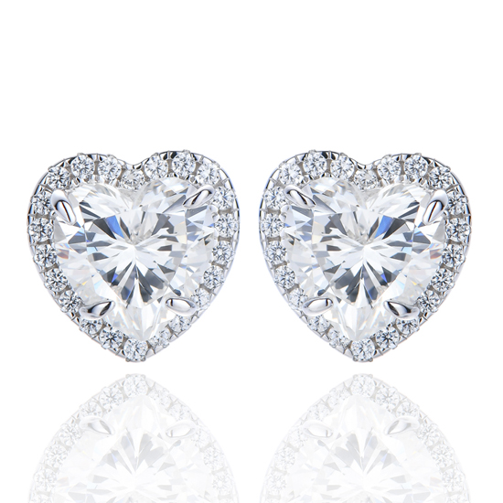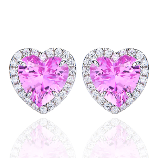 Heart Shape Pink And Round White Cubic Zircon Rhodium Silver Earring
