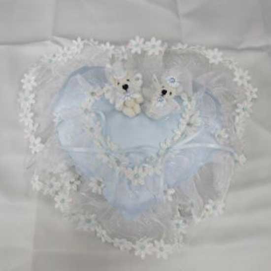 The featured heart-shape pillow comes with a harmonious style. It flaunts floral-pattern trimming. The center heart-shape stuffed part comes with two lovely bears in innocent white. This pillow is definitely a perfect gift for new couples.