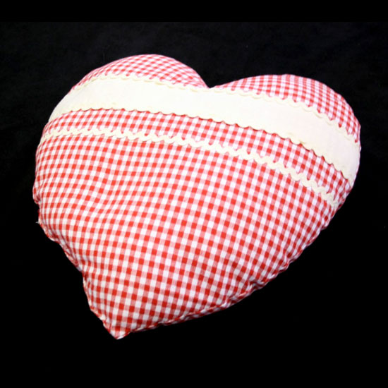 This heart-shaped cushion features a red-and-white checkered pattern adorned with two decorative stripes. Made with soft, quality materials, this cushion provides great comfort instantly. Flaunting a cute design, this cushion lightens up your room casually.