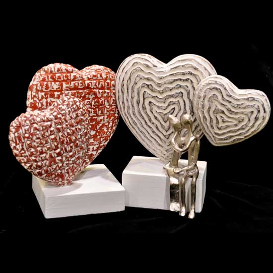 This desk decoration is highlighted by two heart shapes. Embellished by a metal kissing-couple decoration, it looks even more charming. Decorate your desk with this stunning ornament.