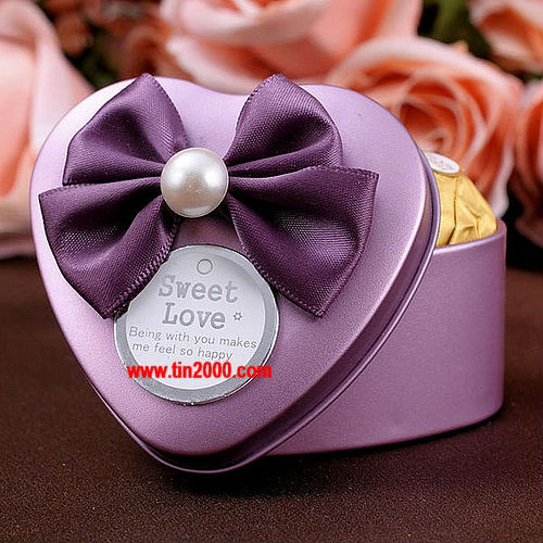 Heart shaped tin box.  The max width is 70mm and the height is 40mm.  Logo embossing is available on the lid and is free.