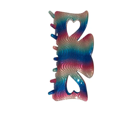 This hair clip's design is inspired by hearts, which symbolize love, affection, and warmth. The heart - shaped cutouts add a romantic and sweet element. The rainbow - colored gradient finish infuses it with vibrancy and a sense of joy, evoking feelings of energy and playfulness. It likely aims to appeal to those who love bold, colorful accessories that make a fashion statement, while also carrying a touch of romance.
