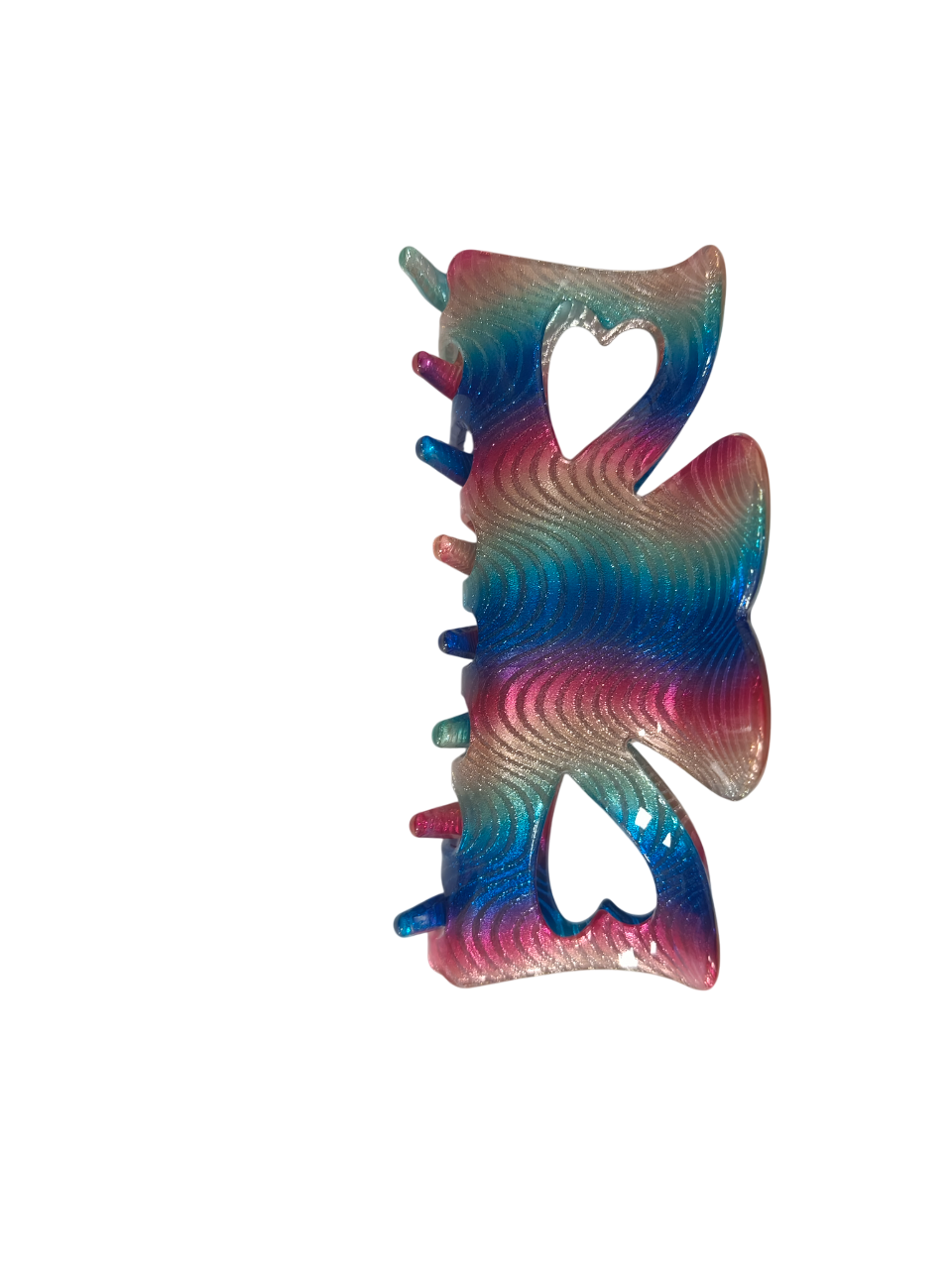 This hair clip's design is inspired by hearts, which symbolize love, affection, and warmth. The heart - shaped cutouts add a romantic and sweet element. The rainbow - colored gradient finish infuses it with vibrancy and a sense of joy, evoking feelings of energy and playfulness. It likely aims to appeal to those who love bold, colorful accessories that make a fashion statement, while also carrying a touch of romance.