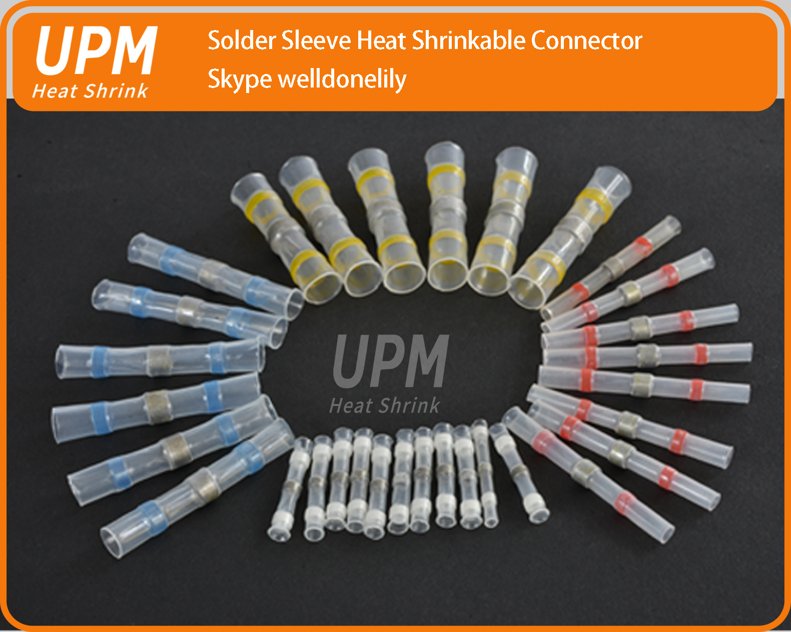 | Solder sleeve discrete wire terminators,including cross-linked polyolefin insulation tube,prefluxed lead-free solder ring,meltable adhesive ring.Used for terminating wires to component terminals, such as tabs, connector pins, and switch terminals.Wire connection, fusion, insulation and waterproofing all completed in one step.One piece transparent design,easy inspection and convenient installation. | ||||||||