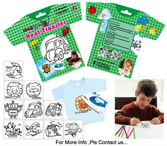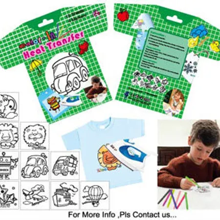 This set of heat pressing designs features cartoonish icons printed with black outlines and blank surfaces to be colored on these stickers. Simply by ironing the pattern would be transferred to any plain garment with ease. This safe and wonderful toy to get hands on and spend creative time with children would come with an extra bonus - a wonderful design to wear on and cherish with its lasting pigments.