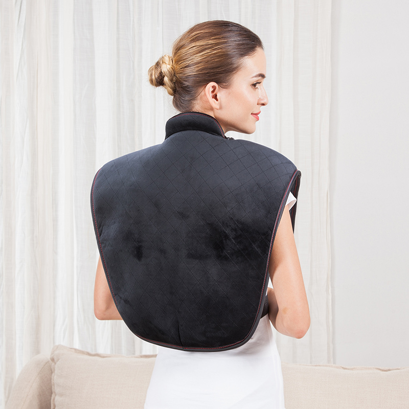 1. 2 massage motors relax the shoulder. 5 vibrating modes selection to enjoy different massage feeling. 2.Soothing heat therapy. Heating area covers full back (HIGH-LOW two intensities of heat function option) 3. Short plush fabric feels great 4. Easy Control Panel, 30 MINUTES AUTO TIMER for more safety. 5. Product Size: 76.5X41X2CM 6. Can be used in home and office. 7. Comes with DC 12V 2.5A adapter 8. Product weight: 1.5kg