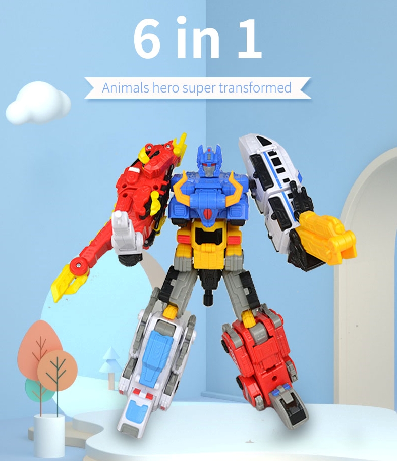 This series includes 6 different transforming toys. Every of them can be changed from vehicles to super animal. With all of the six, it can be integrated into a super hero robot. Collect all 6 characters and start your adventures!