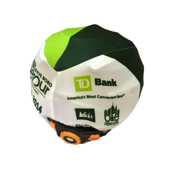 This is a helmet cover designed for bicycles. Made of spandex and polyester, this helmet cover is easy to use and clean. This colorful helmet cover is a fashionable choice.