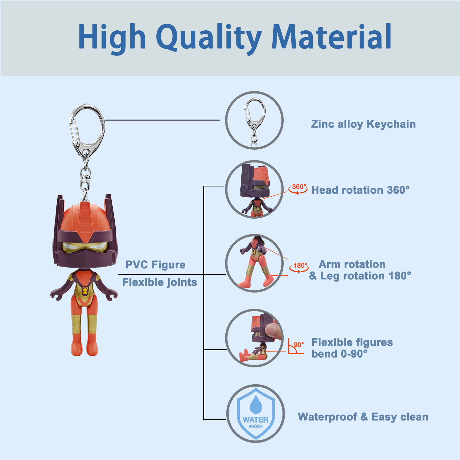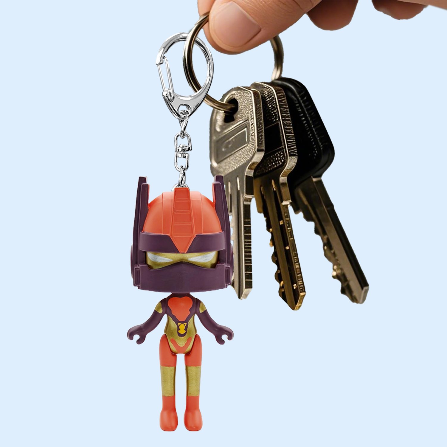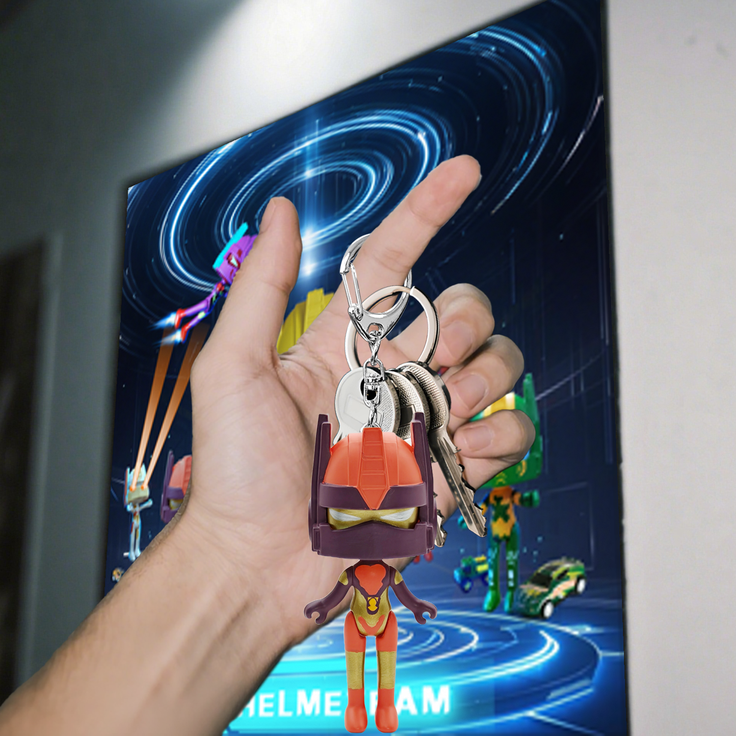Helmet Team Pinkie PVC Figure with Zinc Alloy Keyring, Custom Car Pendant & Bag Clip, Kids Collectible Gift Bulk Wholesale