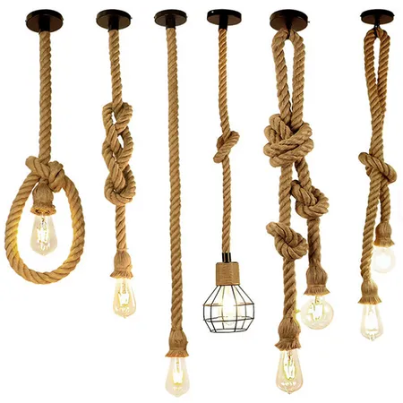 The hemp rope art chandelier takes natural hemp rope as the main element and creates a highly personalized and artistic shape through different knot-weaving methods. Matched with retro-style bulbs, such as Edison bulbs, the light passes through the texture of the hemp rope and the unique knot design, creating a warm, simple and retro atmosphere. It is suitable for spaces with industrial, retro, rural and other decoration styles, such as cafes, studios, retro-themed restaurants and home spaces pursuing personality, and can add a unique artistic atmosphere and nostalgia to the space.