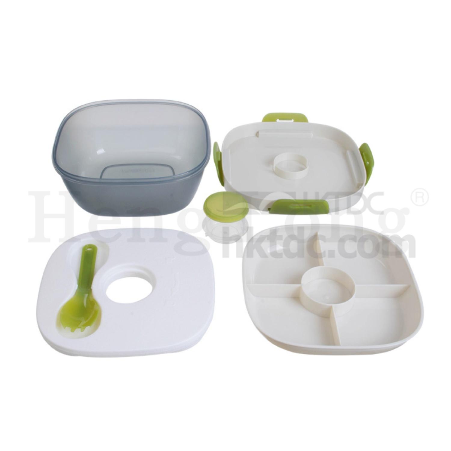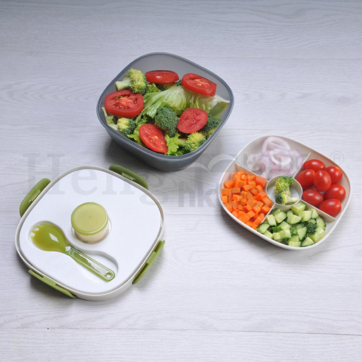 The ice pack inside can keep your salad fresh and chilled. Tray with dividers can help you to store different food separately. You can mix and enjoy your food anywhere with fitted spork inside.