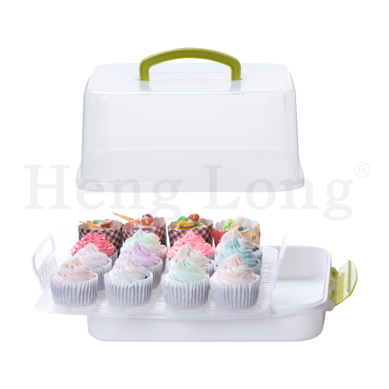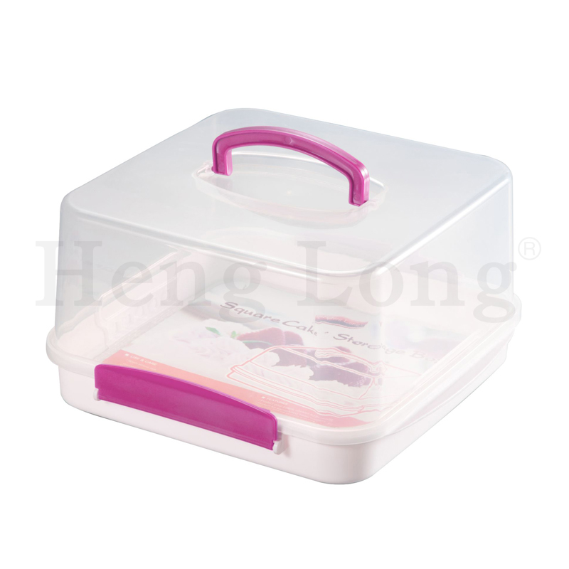 Plastic Square Cake Carrier with Locking Lids and Handle for cake placement and storage, also for picnic.