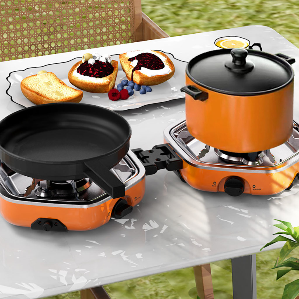 Hex-shaped Outdoor Portable Folding Gas Stove with Double Burner includes the following features :