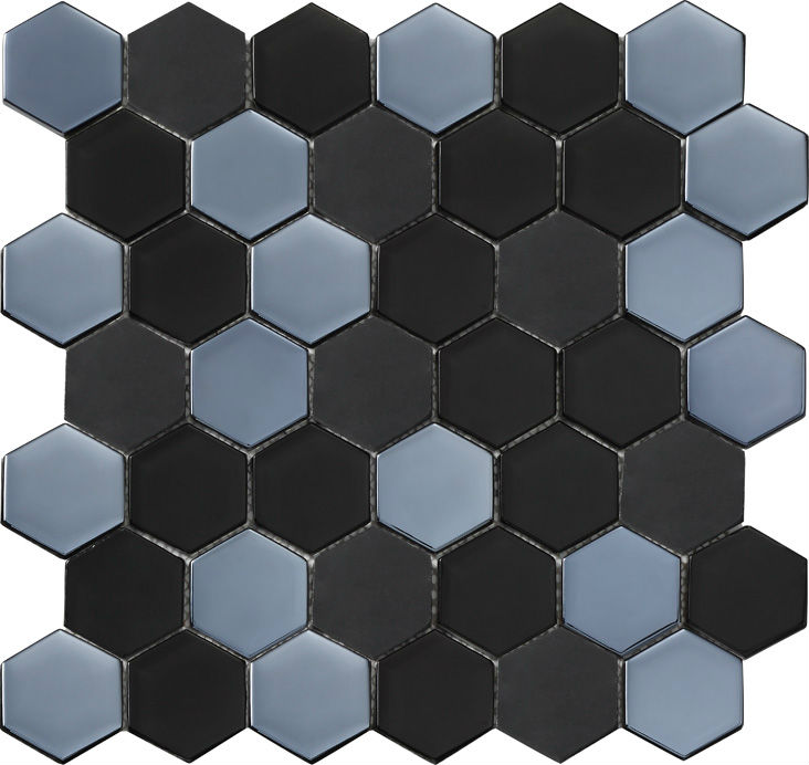 Tonal hexagonal pieces comprise this gorgeous 300 x 300mm mosaic tile. It offers a unique texture and subtle luster with the combination of metal and glass. Add geometric charm to your interior space with this modern honeycomb-like tile in your next retrofit project.