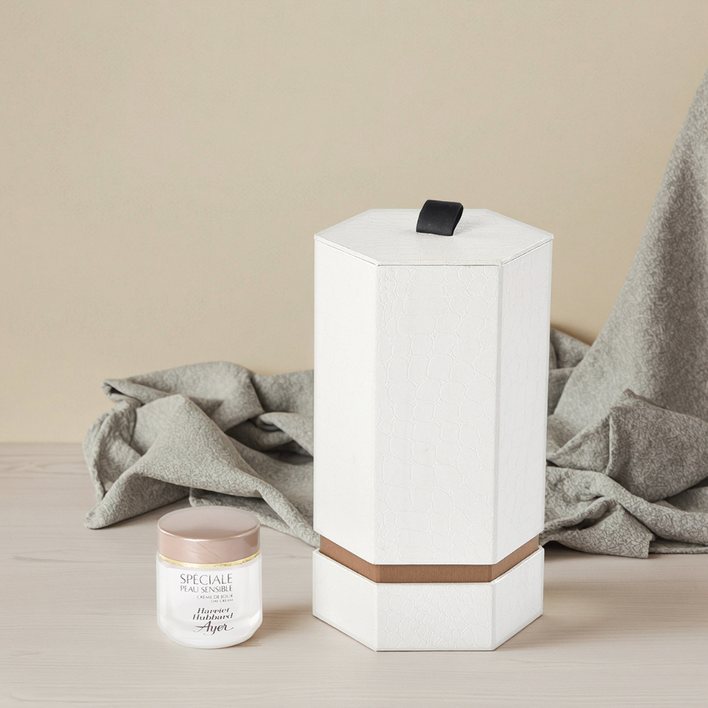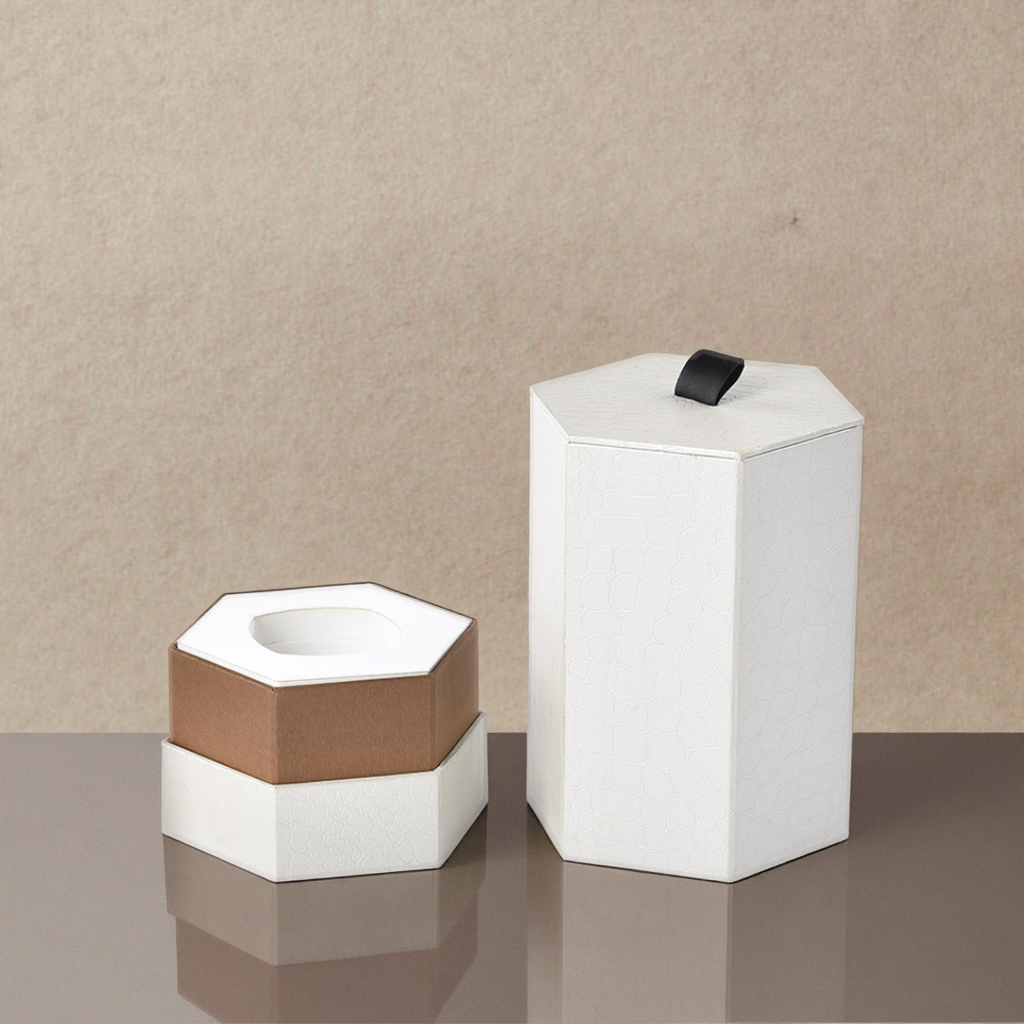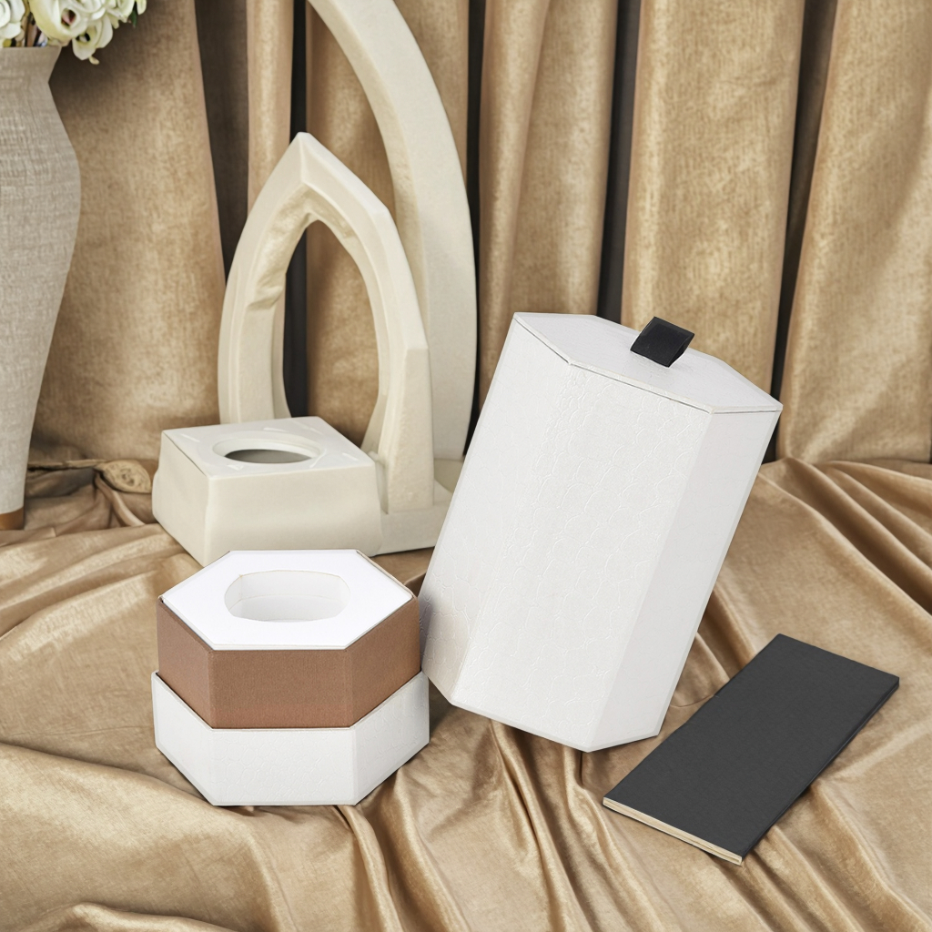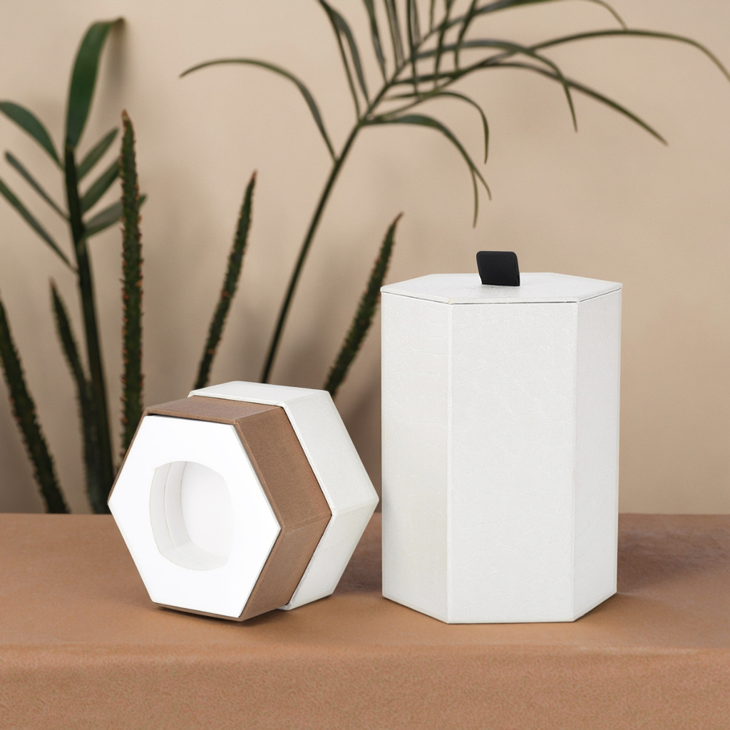 This customizable hexagonal long tube gift box is specially designed for perfumes and cosmetics. It is made of thickened cardboard and is sturdy and durable. The box's exterior features a fine leather texture with natural patterns. Paired with the lid and base structure, it exudes a simple yet high-end style. The interior can be customized with fixed grooves according to the size of the items, effectively preventing shaking and bumping.