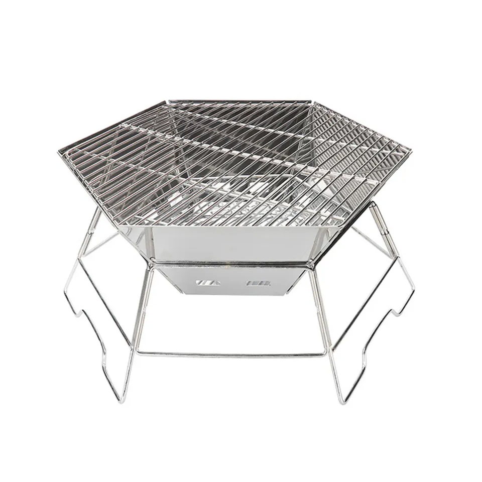Hexagonal-shaped Stainless Steel Portable Grill includes the following features :
