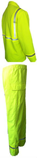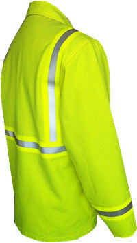 • 2” wide 3MTM flame resistant reflective material: one horizontal 360o stripe at body, two vertical stripes, two horizontal 360o stripes at sleeve