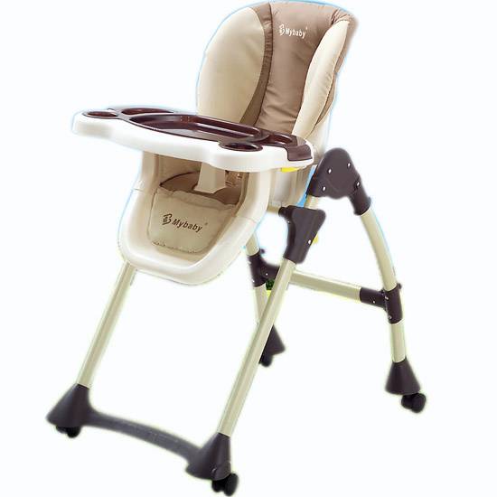 The high chair enables the baby to eat comfortably. It boasts a sturdy aluminum frame. This high chair has locking casters on all four corners to ensure the safety of the baby.