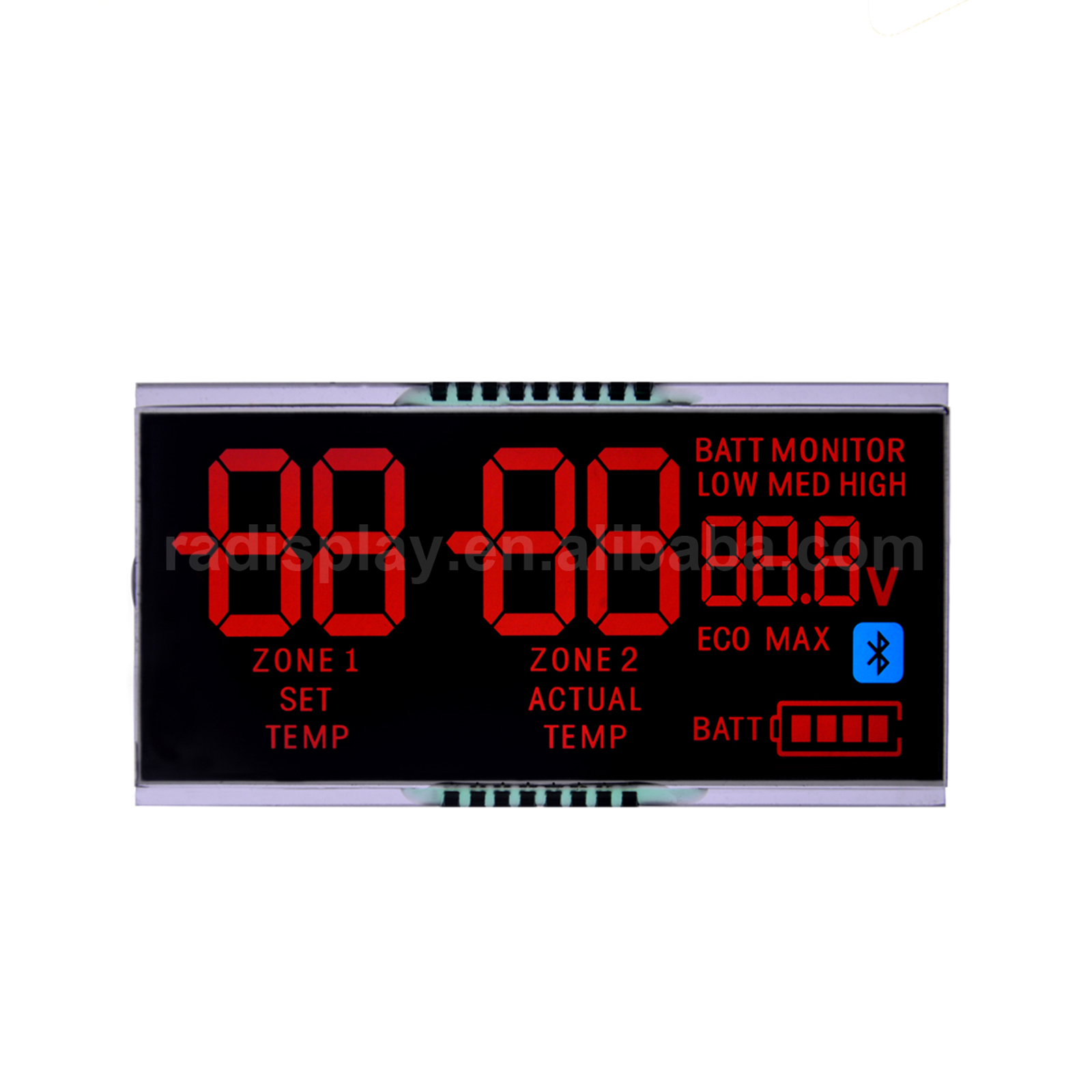 High Contrast Custom VA Black Background Color 7 Segment Lcd Display