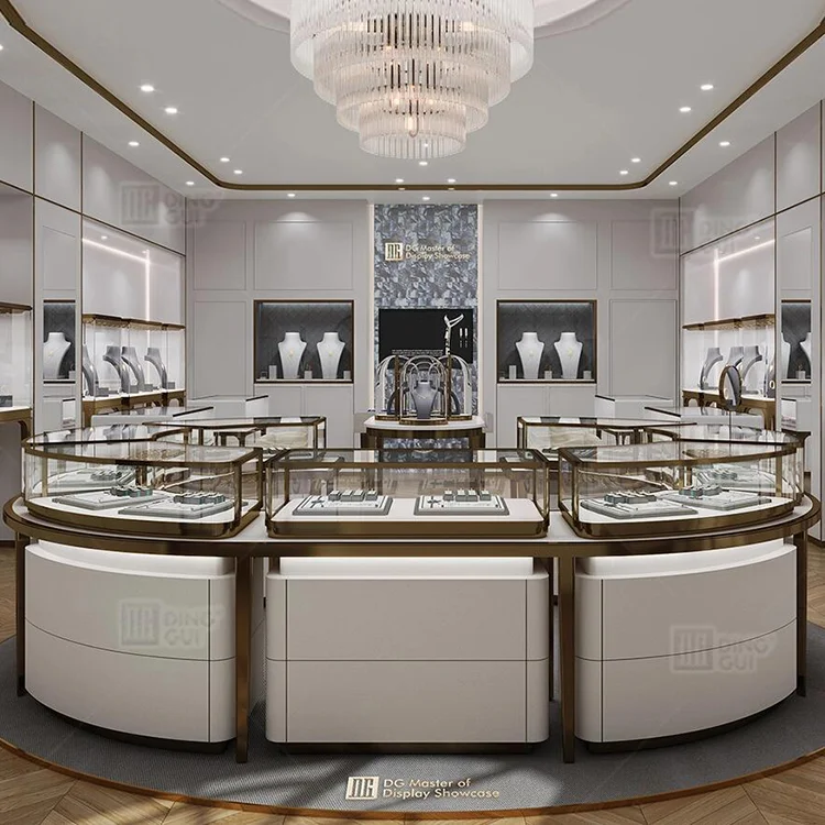 Products we supplied: Jewelry display showcase, jewelry boutique cabinet, jewelry tall showcase, jewelry front cabinet, jewelry window display showcase, jewelry round island display showcase, jewelry curved showcase, jewelry hanging showcase, jewelry vertical showcase, jewelry recessed showcase, VIP jewelry display showcase, jewelry props, jewelry experience counter, negotiation table, sofa, cashier counter, carpet, logo