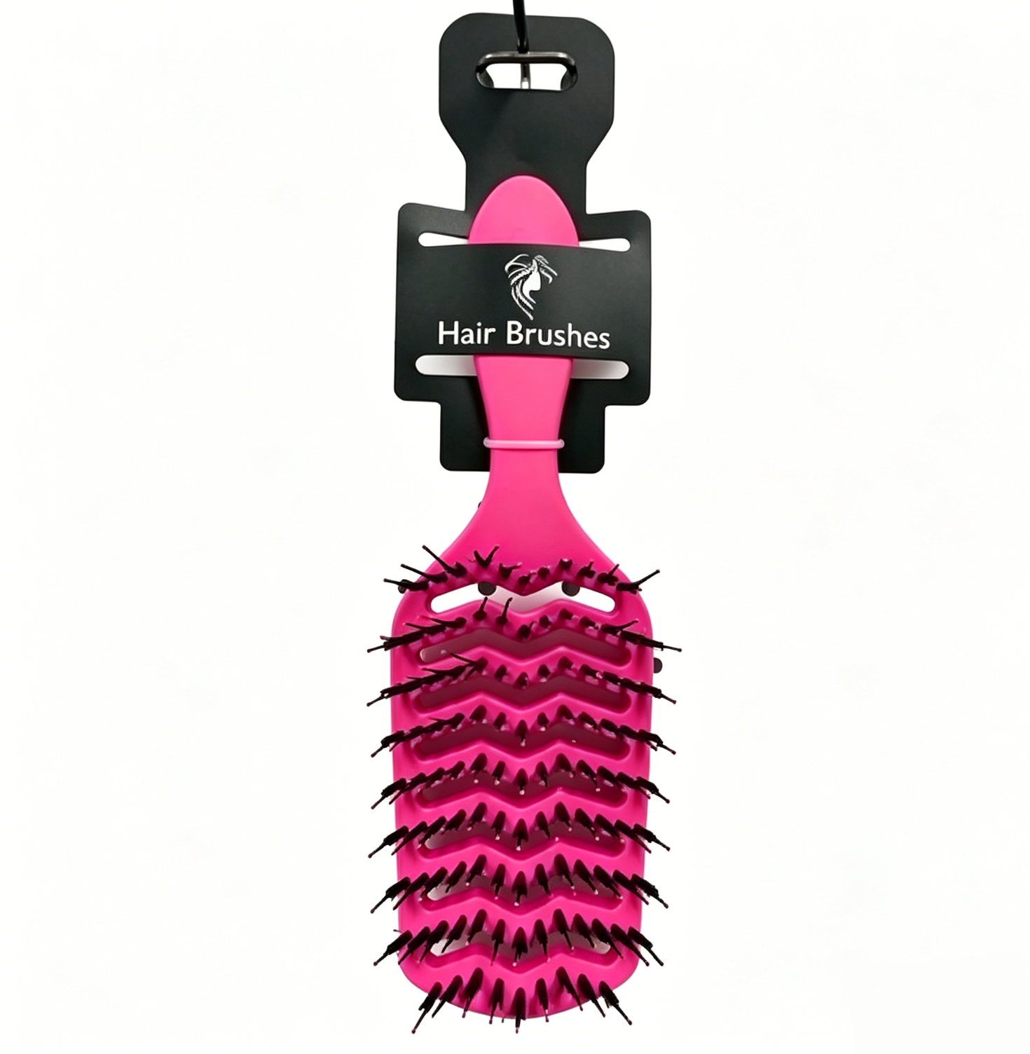 Plastic hair brushes with black nylon boar bristle+black nylon pins+pink pin top
