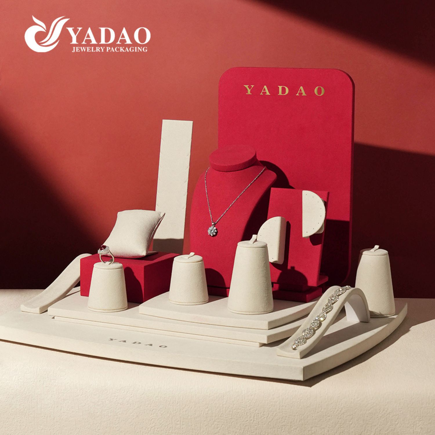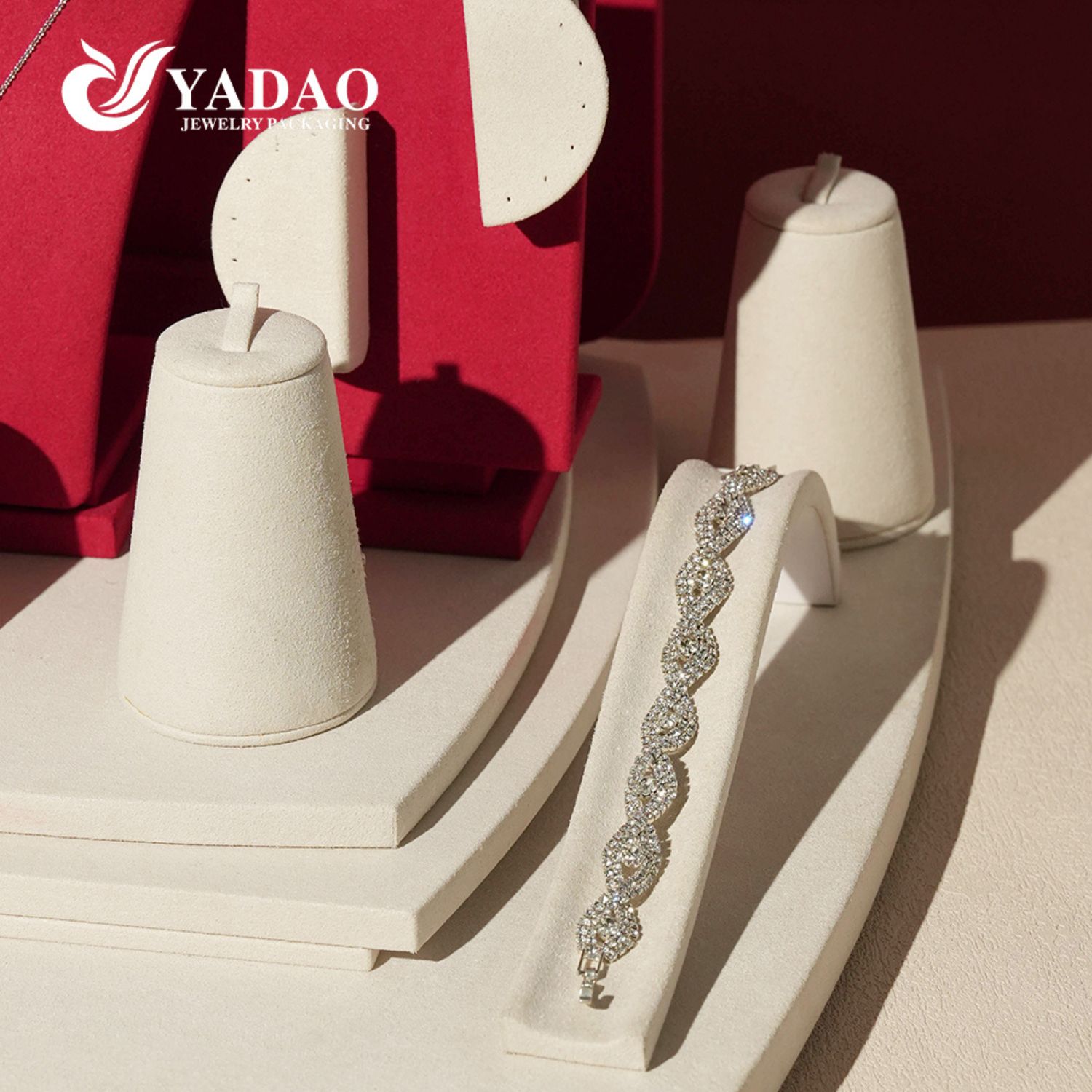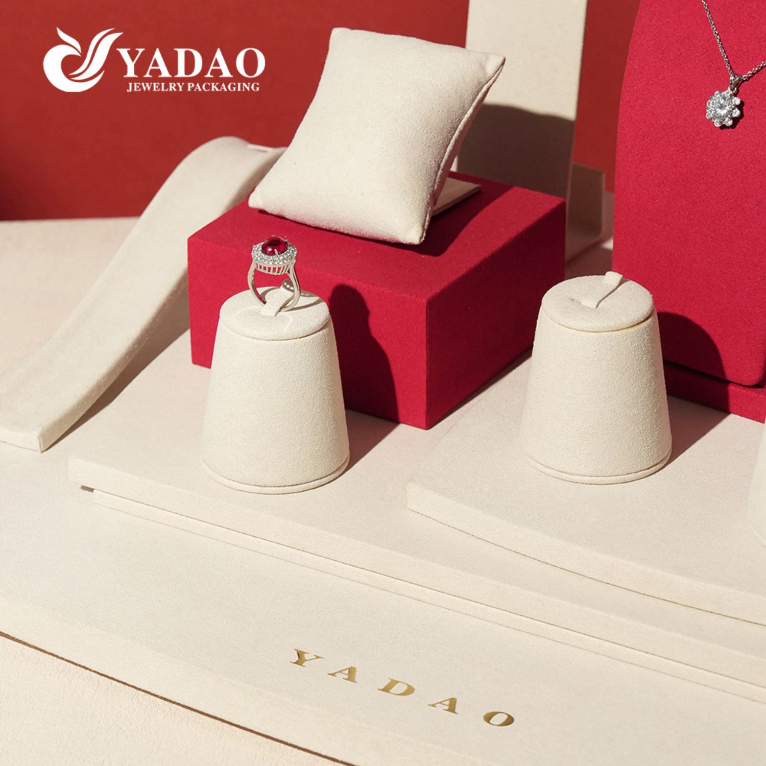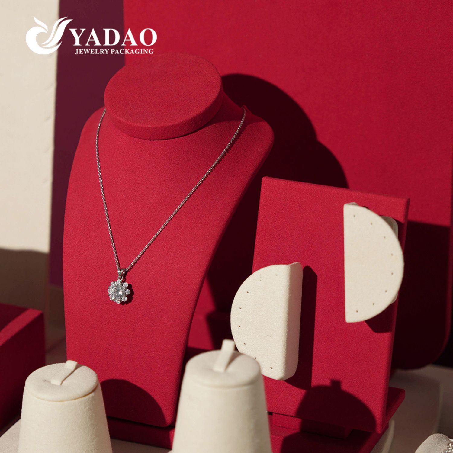 These jewelry display stands combine wood with high-quality microfiber, offering exceptional texture. The red-and-white color scheme enhances the overall sense of luxury. With a variety of display stands designed for different types of jewelry, you can showcase your entire collection more effectively. Ideal for window displays in jewelry retail stores, they help elevate the perceived value and premium appeal of your jewelry.