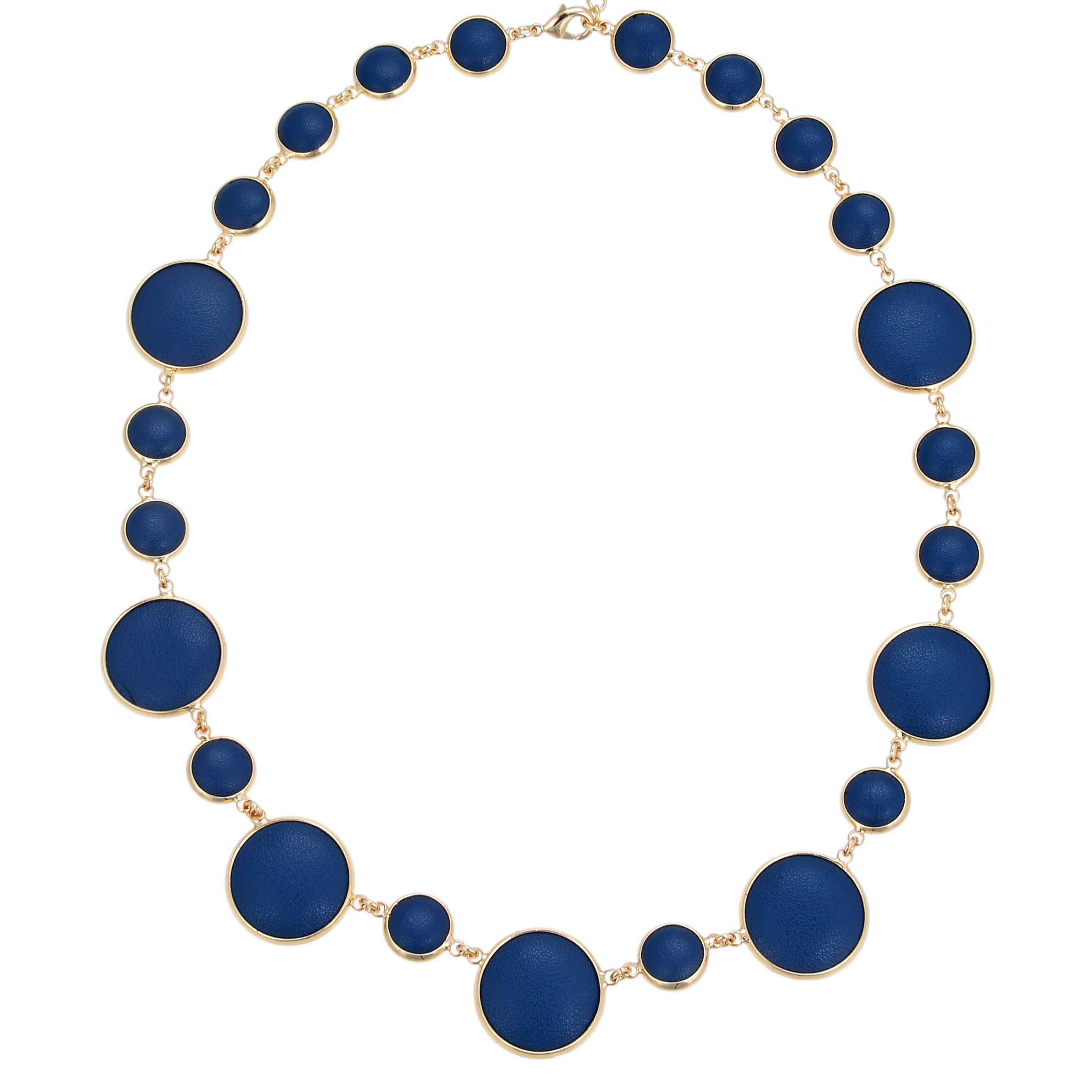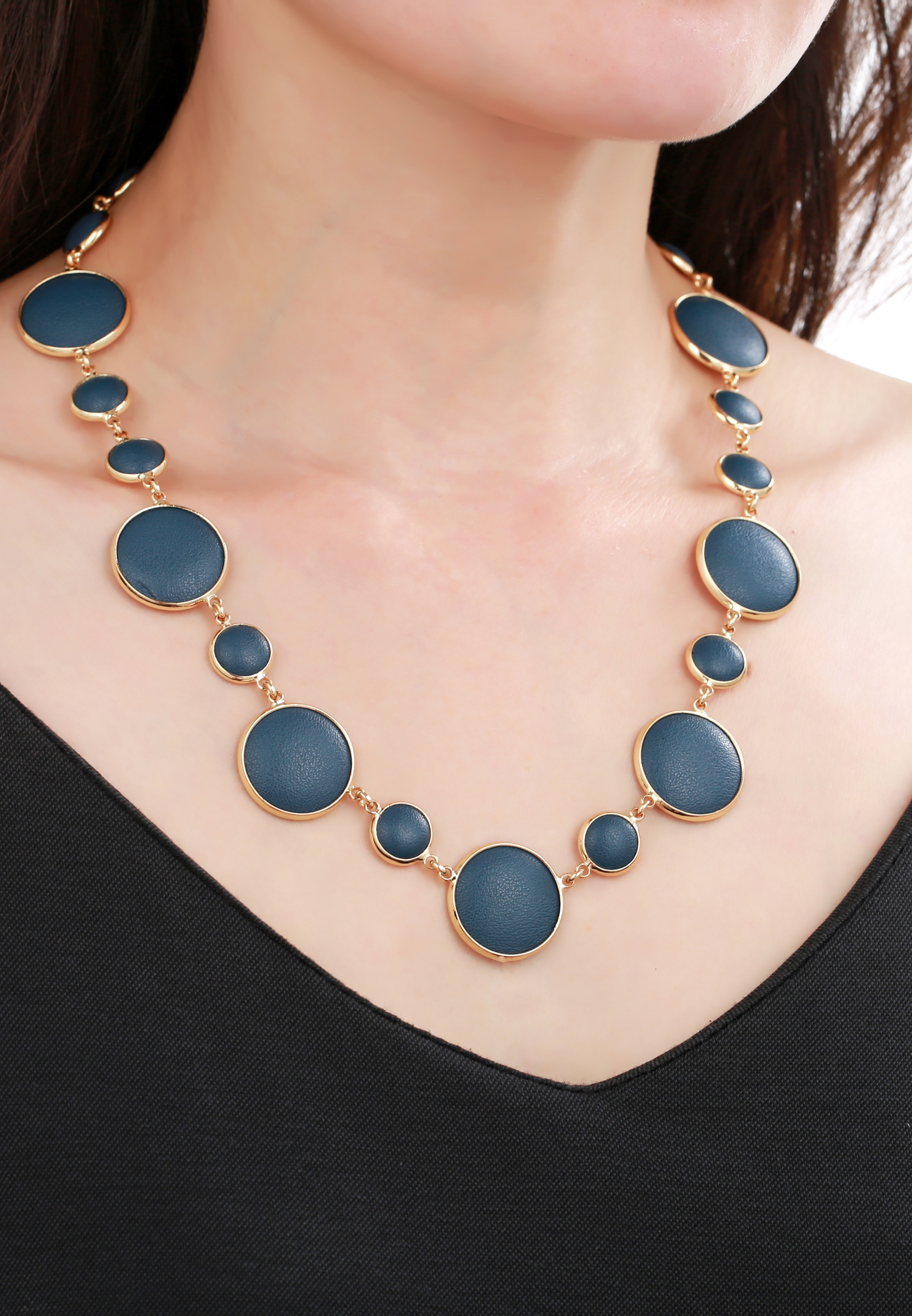 High-End Round Necklace Dark Blue Cow Leather metal Charm Necklace