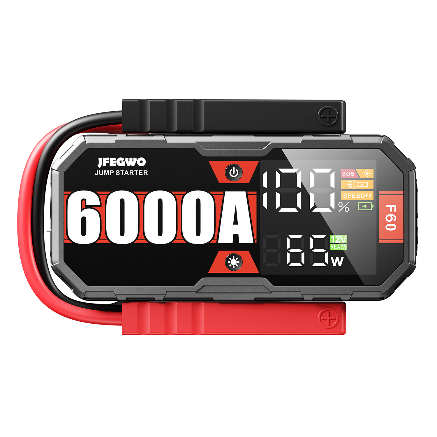 1.Jumpstarts 12V car battery, engines up to 13L gas and 13L Diesel. Up to 60 jumpstarts per charge. 48 months of standby time. 1000 time recharged.