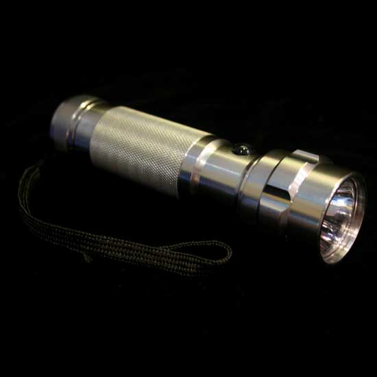 This flashlight works with high power LED for efficient illumination. The metal body is exceptionally sturdy, and polished with a burnished touch. The strong light provided makes it great for outdoor use.