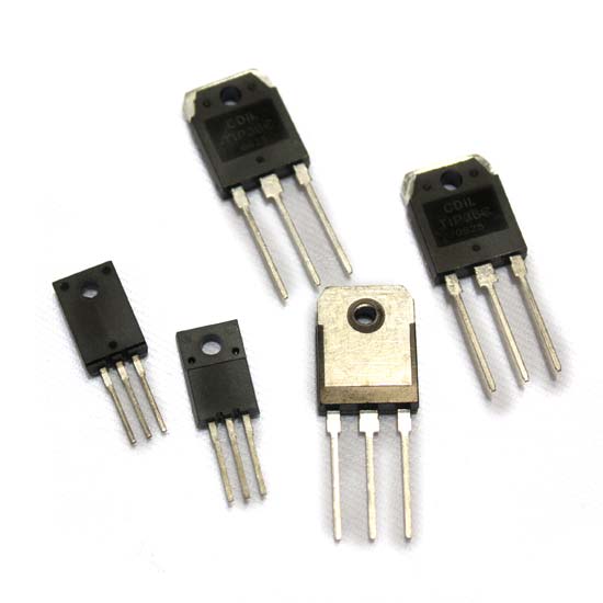 Showcased is a high-power transistor with a three-pin base. The rugged plastic construction ensures lasting durability. This high-power transistor is ideal for a wide array of electronic applications.