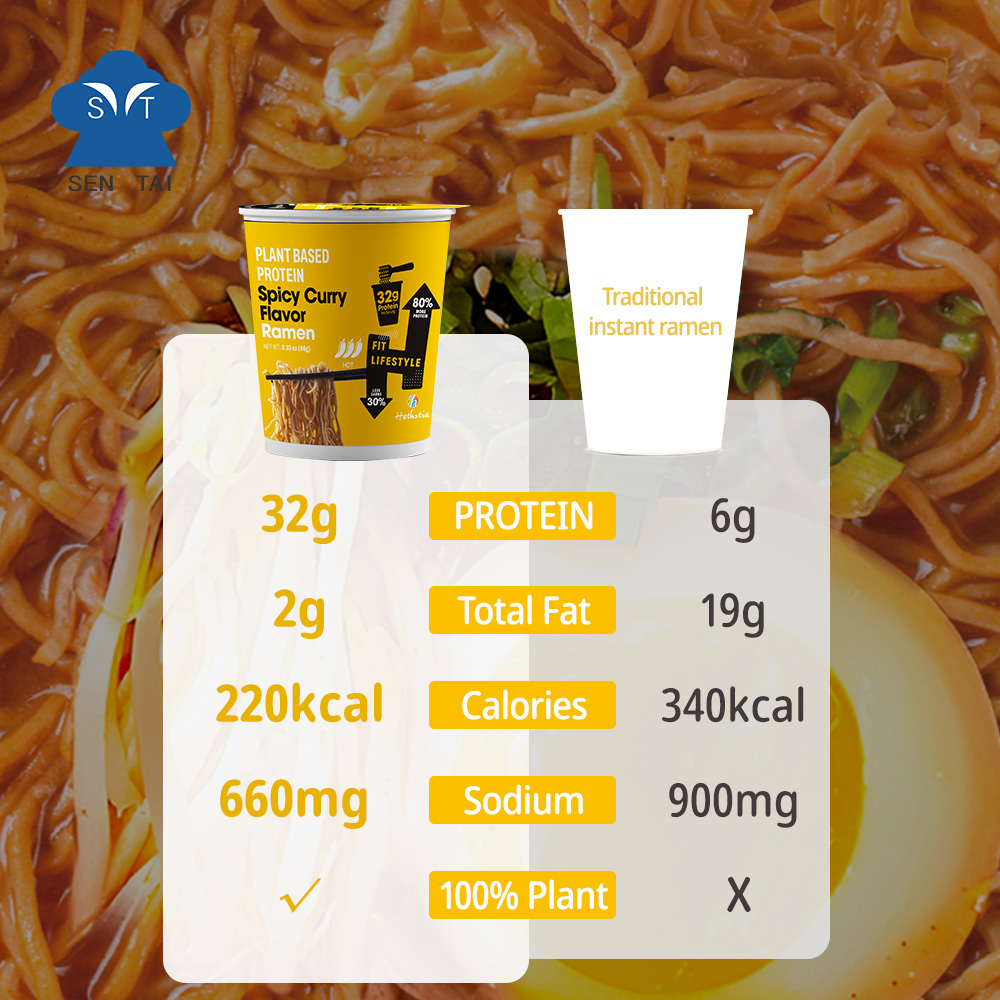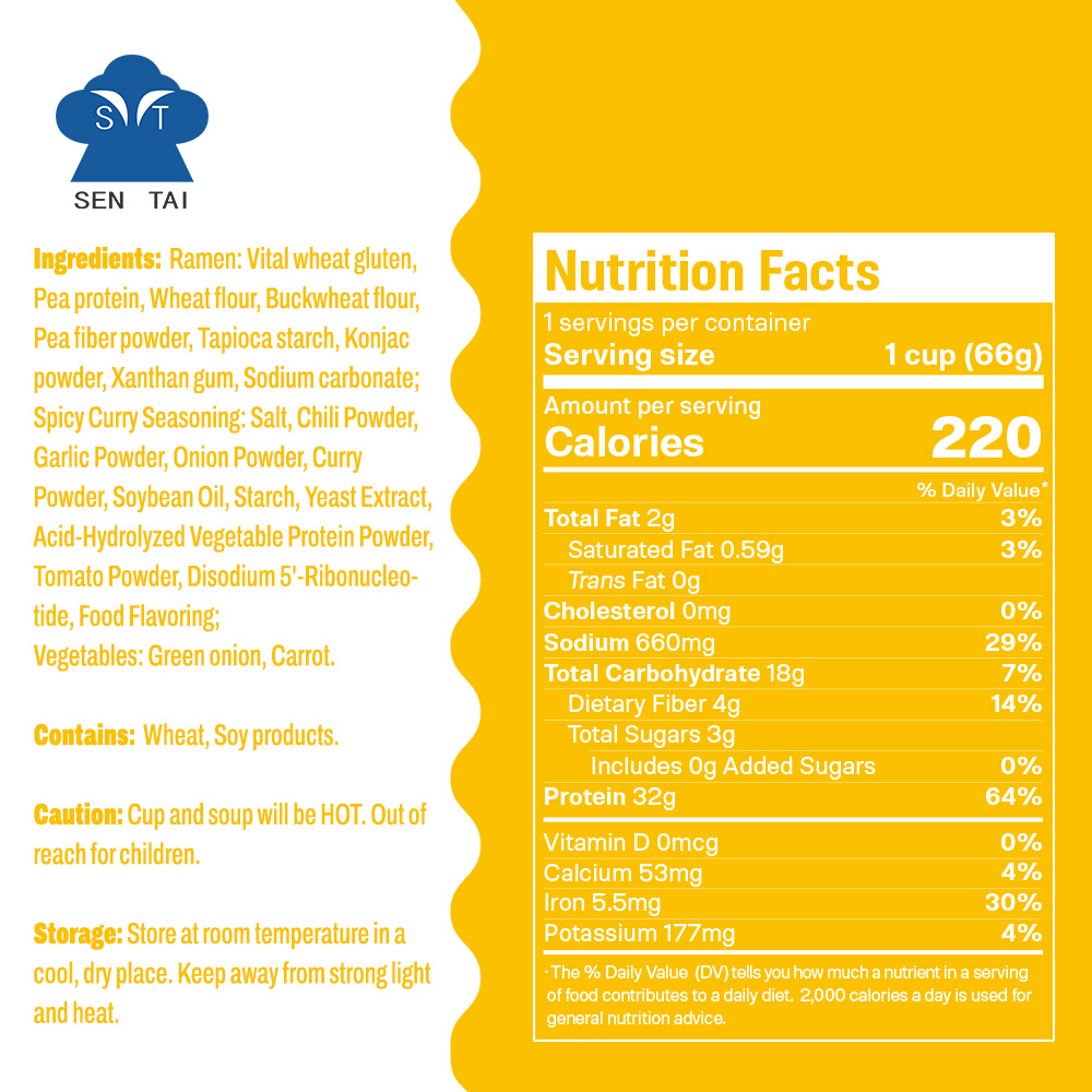 Sentaiyuan is proud to introduce the new high protein cup noodles spicy curry flavor – the perfect combination of deliciousness, convenience, and nutrition to help you start your active life. Each cup of noodles contains 32 grams of protein and 220 kcal, and it takes less than 5 minutes to prepare, making it a quick and healthy choice for busy people!