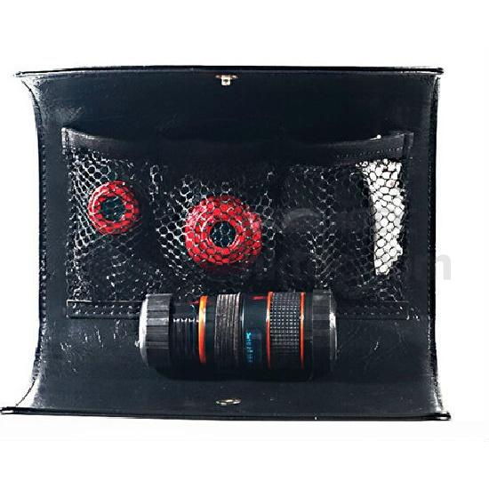 4-in-1 clip lens 1,0.4x wide 2,macro 3,fisheye 4,8x fixed focus telescope lens