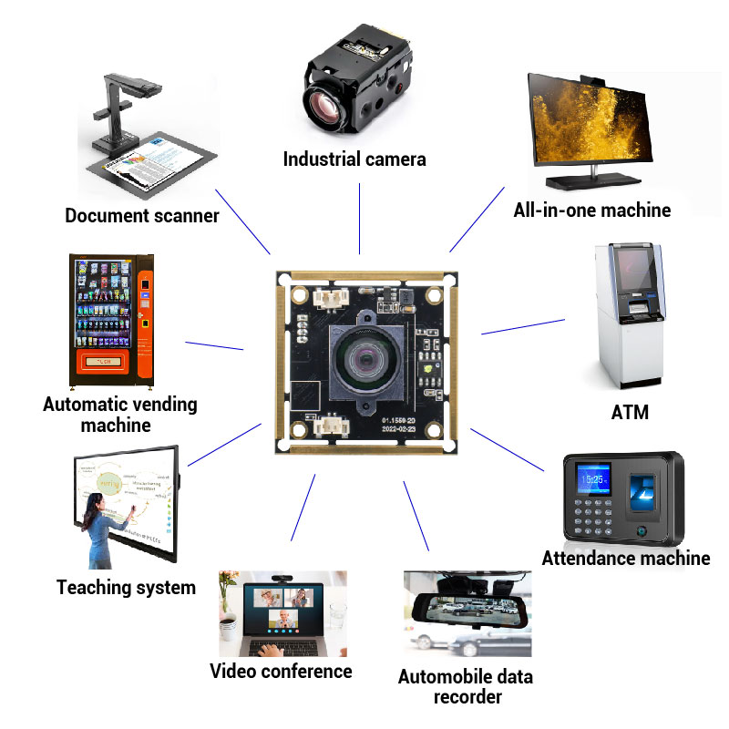 Widely used in document scanner, beauty instrument, teaching system, car and ship control, face matching, OCR components, all-in-one machine, advertising machines, environmental monitoring,automatic vending machine,etc.