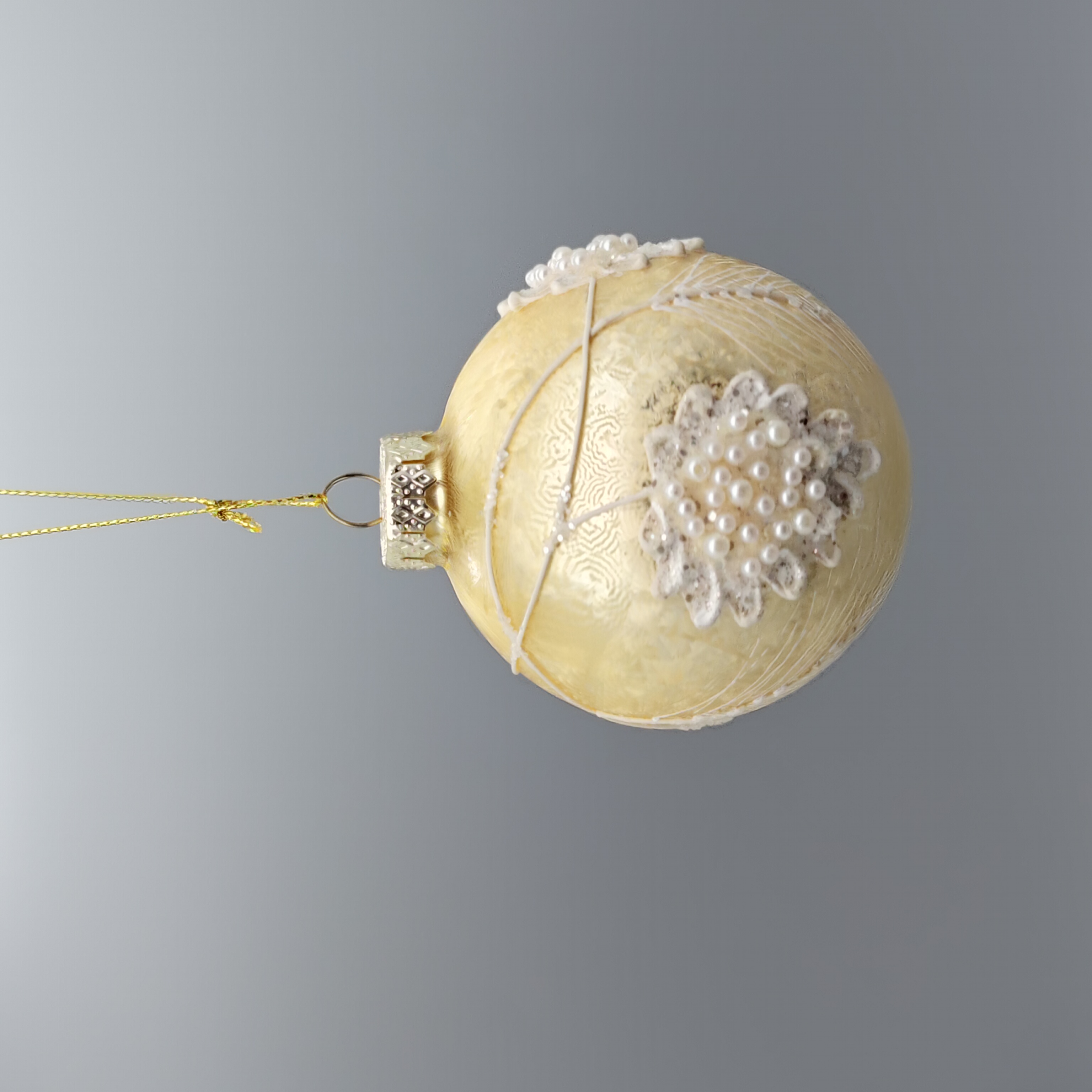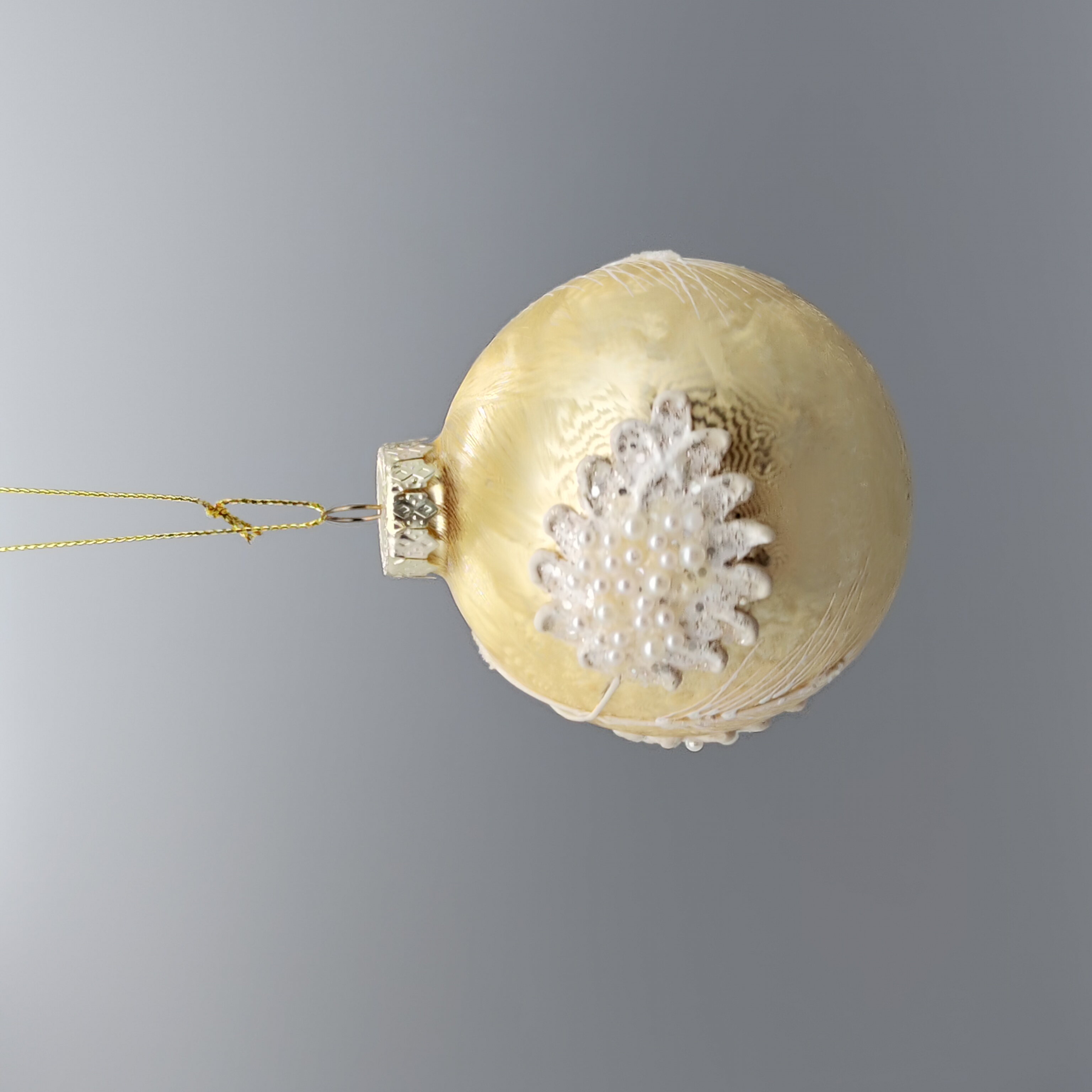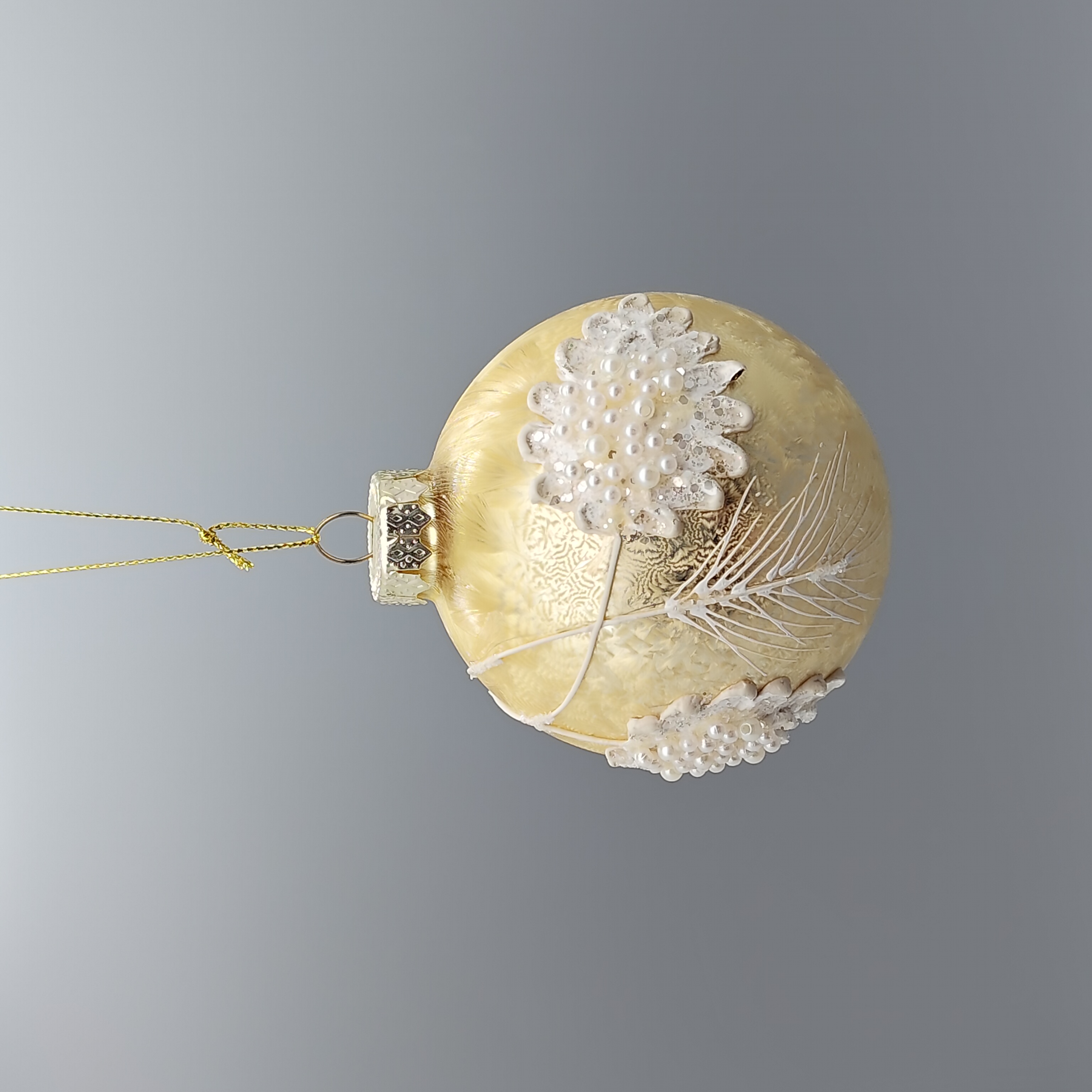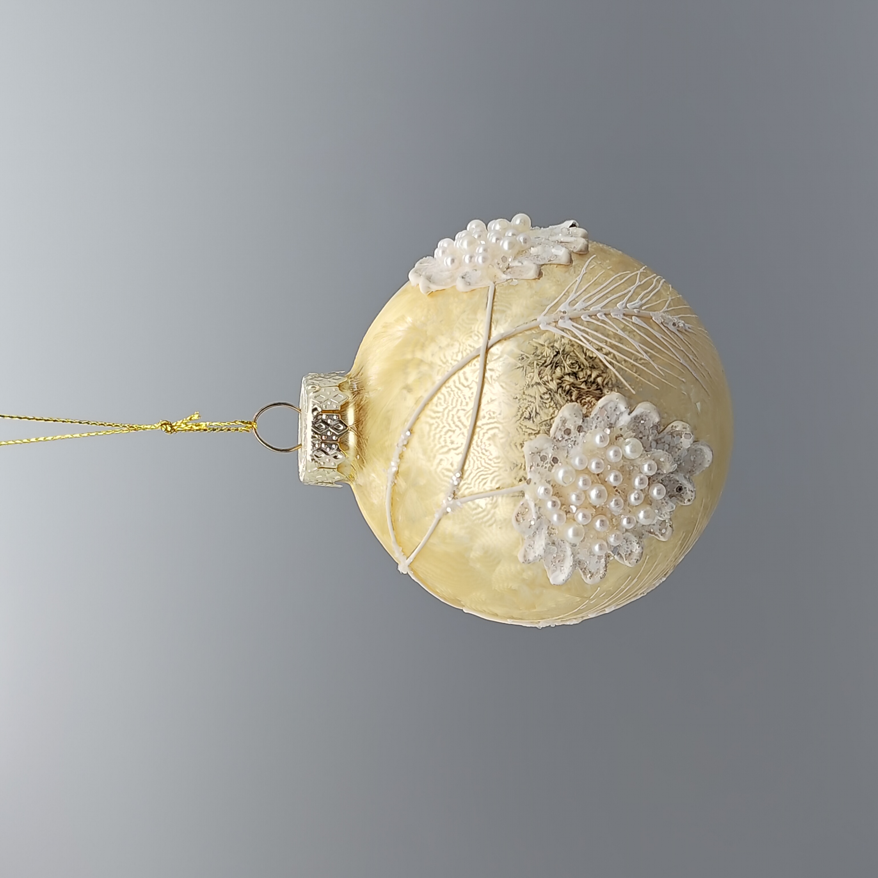 Item Name: High Quality Elegant Golden Pearl Floral Christmas Ornament Ball Glass Ornaments with Sequined Printing for Holiday Decoration