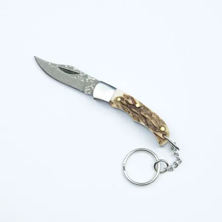 High Quality Folding Knife Damascus Steel Antler Handle Keychain
